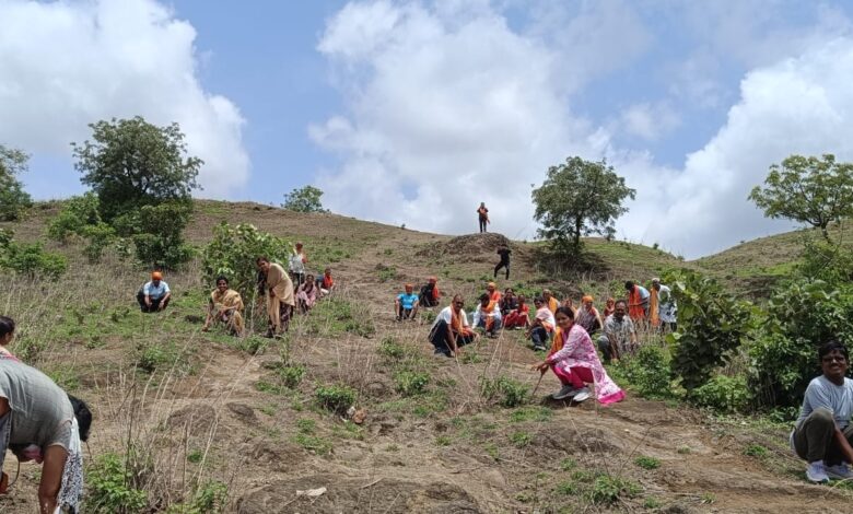 पाऊस दिंडीत नांदेड ते रत्नेश्वरी रस्त्यावर आणि गडावर जागोजागी हजारो बियां टाकण्यात आल्या
