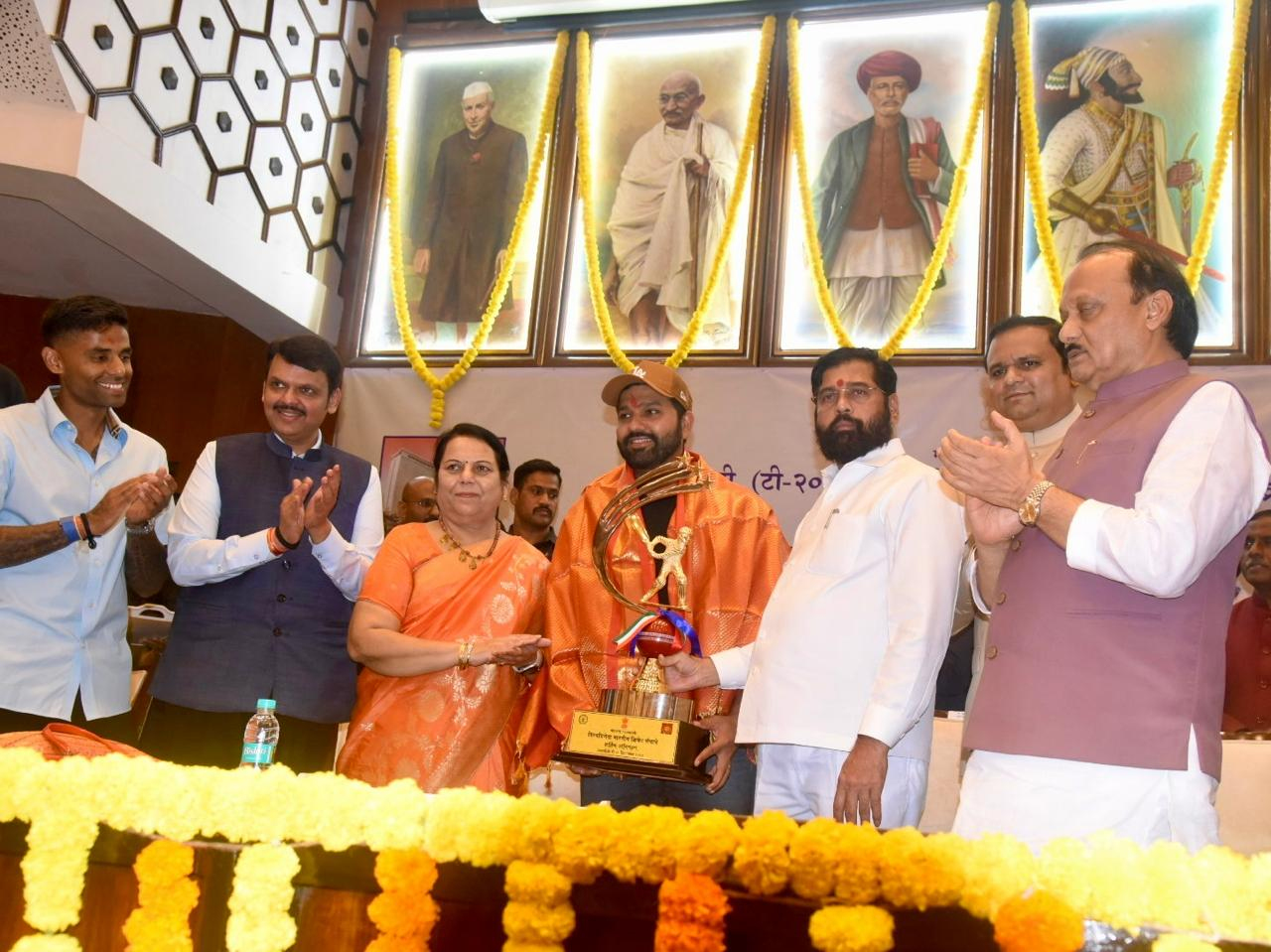 उपसभापती डॉ. गोऱ्हे म्हणाल्या की, विधानभवनात प्रथमच अशाप्रकारचा कार्यक्रम होत आहे. हा सोहळा महाराष्ट्राच्या जनतेच्या वतीने होणारा सत्कार होता. खेळाडूंच्या विजयासाठी प्रत्येक नागरिकाने शुभेच्छा व्यक्त केल्या होत्या. या अभूतपूर्व विजयानंतर क्रिकेटसह सर्व क्षेत्रातील प्रगतीसाठी एकत्र यावे, असेही आवाहन उपसभापती डॉ.गोऱ्हे यांनी केले. यावेळी मुख्यमंत्री शिंदे यांच्या हस्ते कर्णधार रोहित शर्मा यांच्यासह खेळाडूंचे वैशिष्ट्यपूर्ण ट्रॅाफी, विधानमंडळाचे स्मृतीचिन्ह, छत्रपती शिवाजी महाराज यांचा सिंहासनाधिष्ठित मूर्ती, शाल आणि पुष्पगुच्छ देऊन सत्कार करण्यात आला.