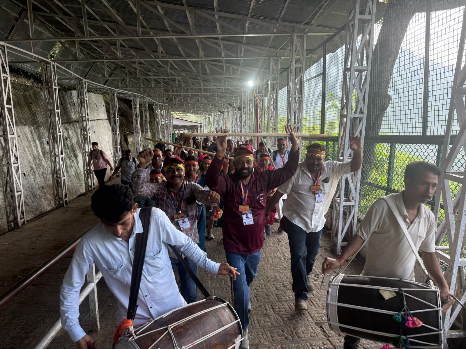 नांदेड| अमरनाथ यात्री संघाचे अध्यक्ष धर्मभूषण ॲड. दिलीप ठाकूर यांच्या नेतृत्वाखाली 25 व्या आणि 26 व्या अमरनाथ वैष्णोदेवी यात्रेला गेलेल्या दोन्हीही जत्थ्यातील 147 यात्रेकरूंचे नांदेड येथे आगमन झाल्यानंतर त्यांचे जल्लोषात स्वागत करण्यात आले.अविस्मरणीय यात्रा झाल्याबद्दल सर्व यात्रेकरूंनी ढोल ताशाच्या गजरात भांगडा करत आनंद व्यक्त केला.