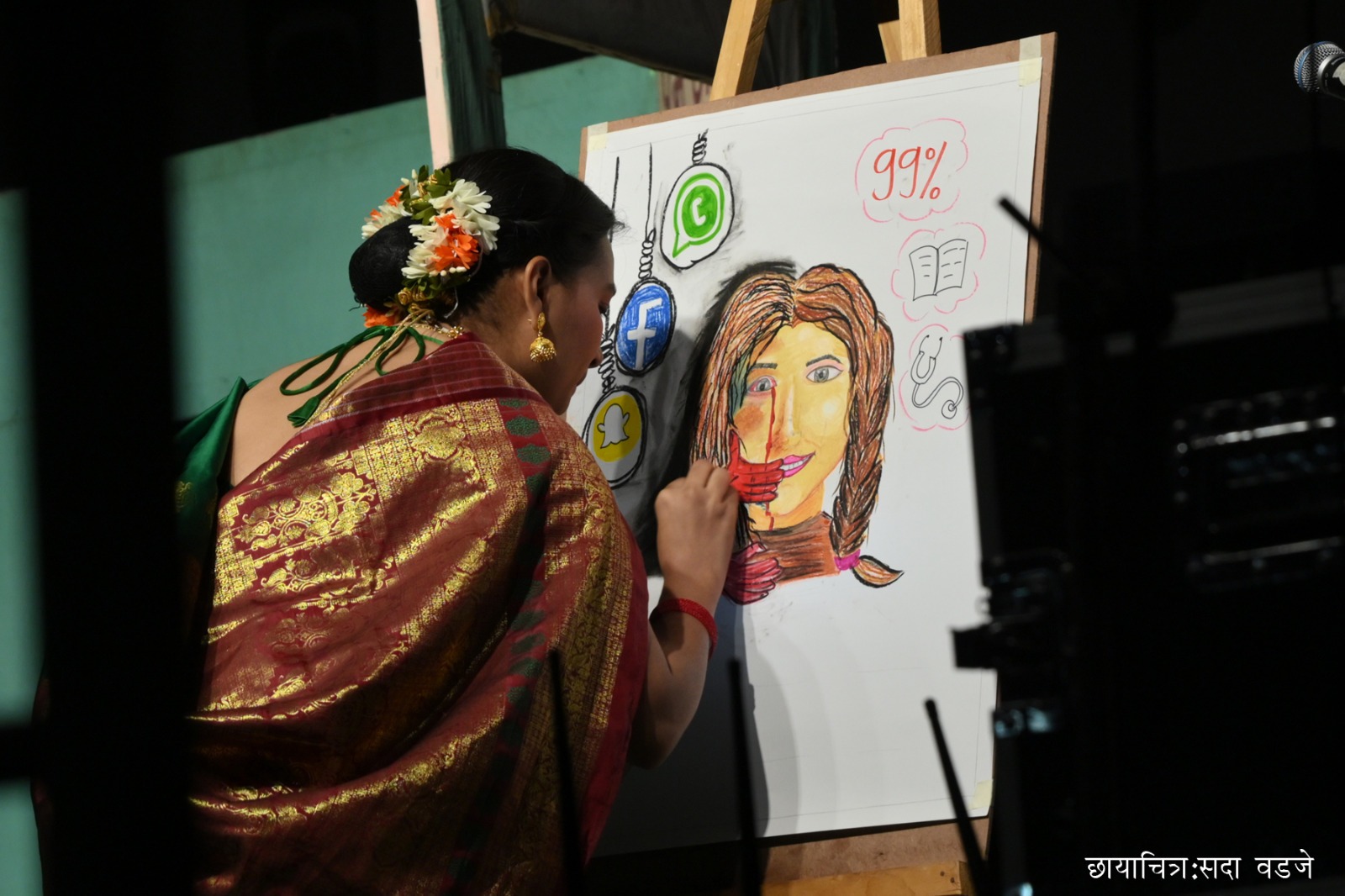 सध्याची पिढी मोबाईल आणि सोशल मीडियाच्या गर्तेत जगणे विसरून गेली आहे. अंतर्मुख झालेली पिढी मानसिक दृष्ट्या कमकुवत होत असल्याचे समाजातील कटू सत्य त्यांनी या नाट्यछटेतून व्यक्त केले. या सांस्कृतिक कार्यक्रमाला जिल्हाधिकारी राहुल कर्डिले,यापूर्वीचे जिल्हाधिकारी अभिजीत राऊत, सातारा जिल्हाधिकारी संतोष पाटील यांच्यासह मान्यवर उपस्थित होते.