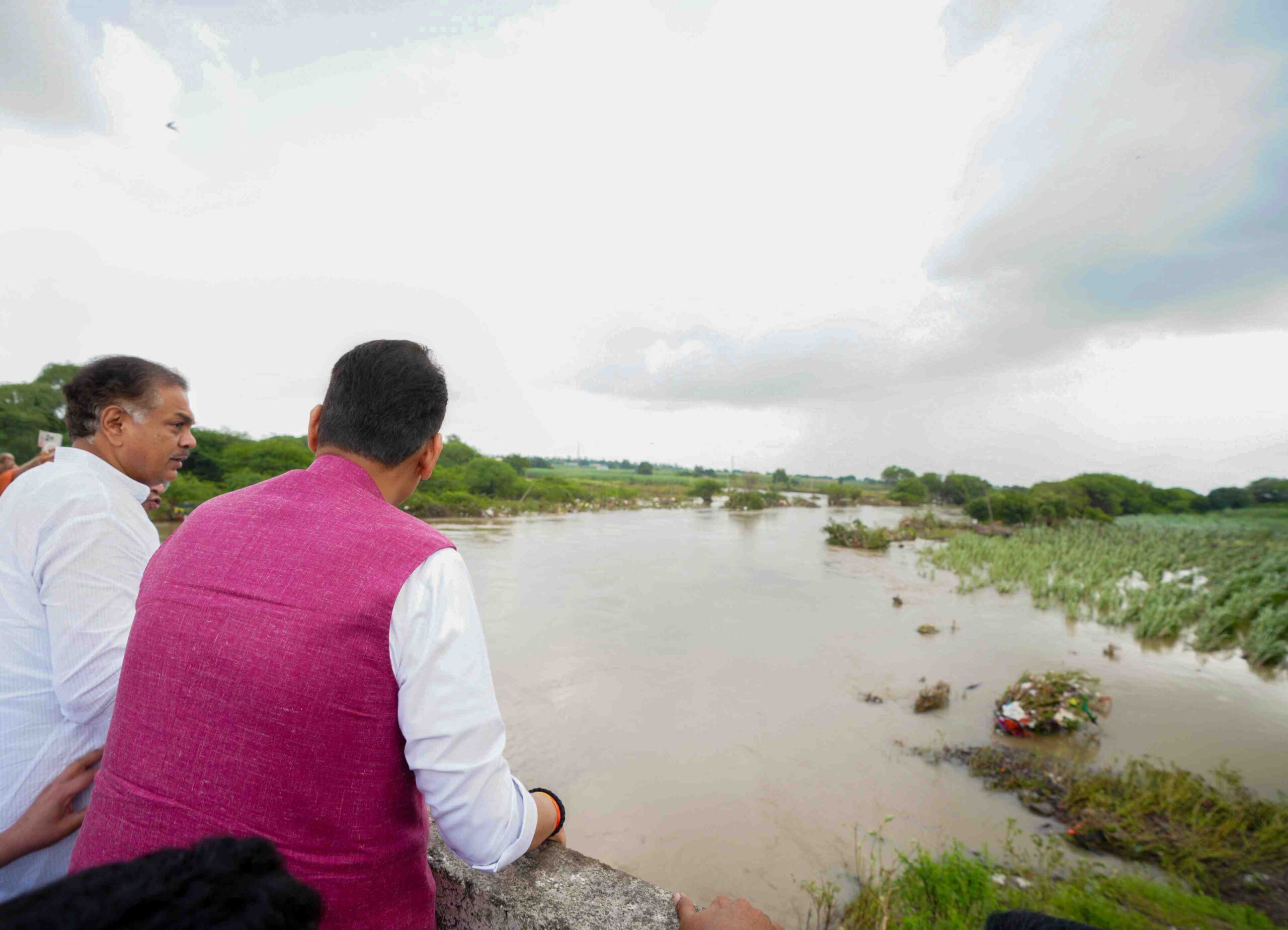 मुख्यमंत्री फडणवीस यांनी सर्वप्रथम औसा ते तुळजापूर महामार्गावरील पुलावरून तेरणा नदीपात्राची, नदीला आलेल्या पुरामुळे झालेल्या शेतपिकांच्या नुकसानीची पाहणी केली. त्यानंतर उजनी गावालगत असलेल्या तेरणा नदीपात्राची व पुरामुळे गावातील घरे, दुकानांच्या झालेल्या नुकसानीची पाहणी करून शेतकरी, ग्रामस्थांकडून शेतपिकांच्या नुकसानीची माहिती घेतली.