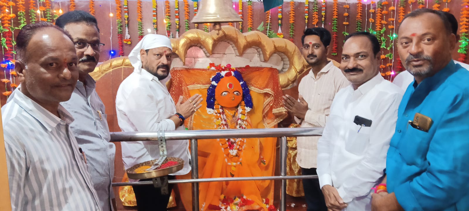 हजारो भाविकांच्या उपस्थितीत सोमवारी पार पडलेल्या घटस्थापणा विधीप्रसंगी माजी आमदार माधवराव पाटील जवळगावकर यांनी पूजेचा मान स्वीकारला आणि देवीचे दर्शन घेत उपस्थितांना नवरात्री उत्सवाच्या शुभेच्छा दिल्या. पुरोहित कांतागुरु वाळके, साईनाथ बडवे यांच्या वाणीत मंत्रोच्चारातून धार्मिक विधी आणि अलंकार सोहळा थाटात संपन्न झाला. यावेळी श्री परमेश्वर मंदिराचे उपाध्यक्ष महाविरचंद श्रीश्रीमाळ, कृषी उत्पन्न बाजार समितीचे सभापती जनार्धन ताडेवाड, मंदिर कमेटीचे अध्यक्ष राजेंद्र रामदिनवार, सचिव संजय मारावार आदींसह मंदिर कमिटीचे संचालक व समस्त गावकरी महिला पुरुष भाविक मंडळी उपस्थित होती.