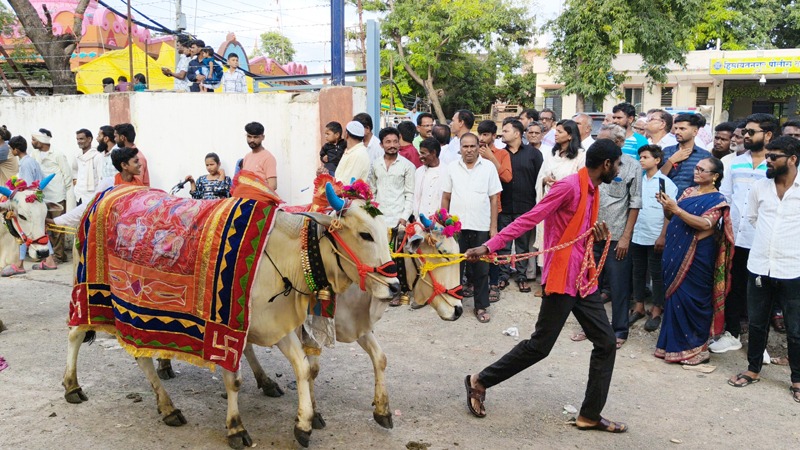 शुक्रवार दिनांक २२ ऑगस्ट रोजी श्रावण अमावास्येनिमित्त पोळा सण पार पडला. सकाळपासूनच शेतकऱ्यांनी आपल्या बैलजोड्यांना स्नान घालून रंगीबेरंगी सजावट केली होती. वार्निश, घुंगरमाळ, झुली, कासरे, गोंडे आदी सजावटींनी सजलेले बैल गावोगावी व शहरात आकर्षण ठरत होते. महिलांनी पारंपरिक पद्धतीने सडा-संमार्जन करून शेतीअवजारे आणि पळसाच्या मेढ्याची पूजा-अर्चना केली.