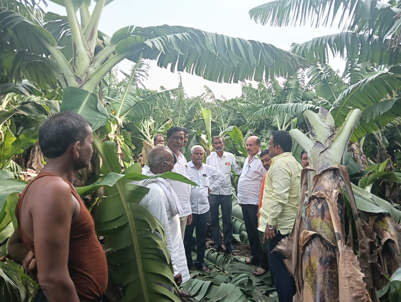 नांदेड/अर्धापुर। अर्धापूर तालुक्यात दिनांक नऊ रोजी मृग नक्षत्राच्या वादळी वाऱ्याने व पावसाने तालुक्यातील केळी व पपईच्या बागा उध्वस्त केल्या. तोंडाशी आलेला खास निसर्गाने अचानक हिरावून घेतल्याने शेतकऱ्यांचे अतोनात लाखो रुपयांचे नुकसान झाले. खासदार अशोकराव चव्हाण व या भागाच्या आमदार श्रीजयाताई चव्हाण यांनी प्रशासनाला दिल्या पंचनामे करण्याची सूचना.