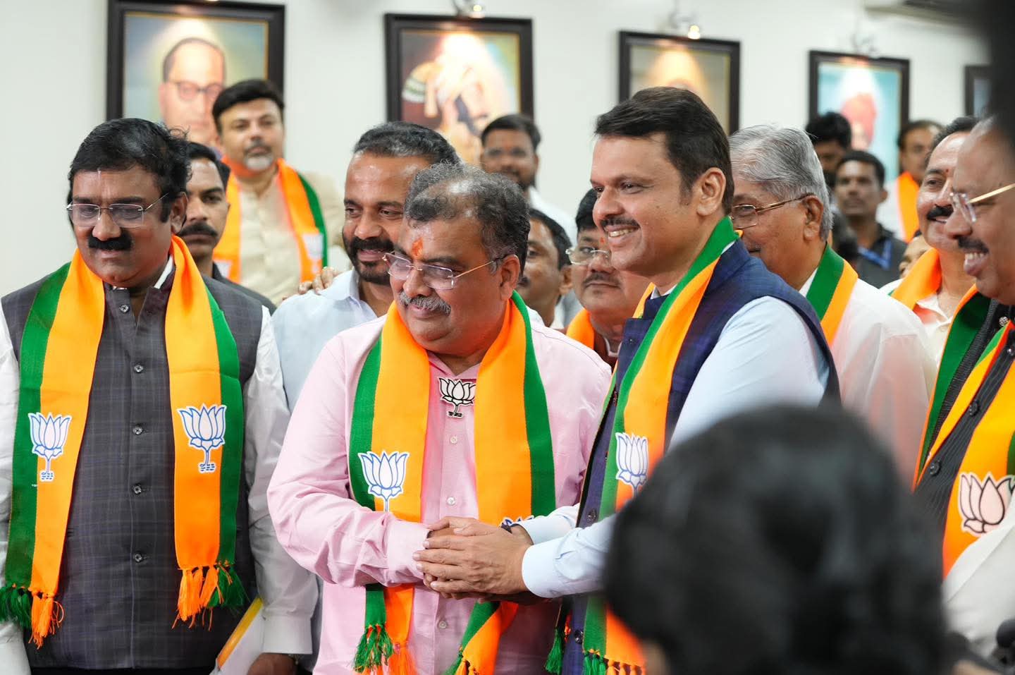 मुख्यमंत्री देवेंद्र फडणवीस, केंद्रीय निवडणूक अधिकारी व केंद्रीय मंत्री किरण रिजिजू, राष्ट्रीय सहसंघटनमंत्री शिवप्रकाश, राष्ट्रीय सरचिटणीस विनोद तावडे, राष्ट्रीय सरचिटणीस व निरीक्षक अरुण सिंह, श्रीमंत छत्रपती खा. उदयनराजे भोसले, केंद्रीय राज्यमंत्री मुरलीधर मोहोळ, केंद्रीय राज्यमंत्री रक्षाताई खडसे, विधान परिषदेचे सभापती राम शिंदे, विधानसभेचे अध्यक्ष राहुल नार्वेकर, माजी प्रदेशाध्यक्ष रावसाहेब पाटील दानवे, पर्यावरण मंत्री व राष्ट्रीय सचिव पंकजाताई मुंडे, भाजपा मुंबई अध्यक्ष व सांस्कृतिक कार्यमंत्री आशिष शेलार, माजी प्रदेशाध्यक्ष सुधीर मुनगंटीवार, निवडणूक अधिकारी चैनसुख संचेती, माजी मुख्यमंत्री खा. अशोक चव्हाण, माजी मुख्यमंत्री खा. नारायण राणे तसेच राज्य मंत्रिमंडळातील सर्व मंत्री यावेळी उपस्थित होते.