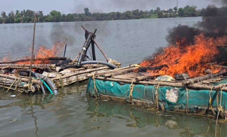 कारवाईदरम्यान पोलिसांनी टिपर, ट्रॅक्टर, हायवा, इंजन, जेसीबीसारखी यंत्रसामग्री तसेच वाळूसह मोठ्या प्रमाणात साहित्य जप्त केले