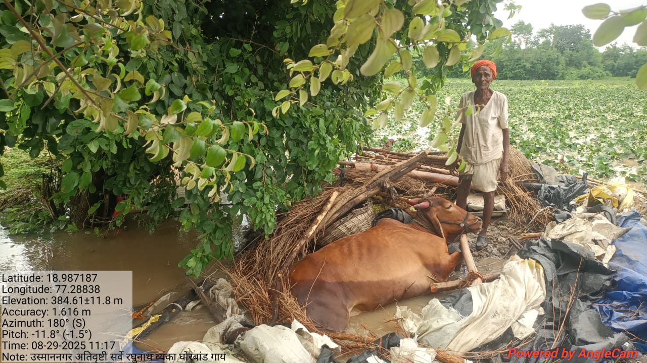 उस्माननगर, माणिक भिसे| उस्माननगर परिसरात दि २७ ते ३० ऑगस्ट दरम्यान ढगफुटी सदृश्य होऊन दिवस रात्र धोधो पाऊस बरसल्याने नदीनाले , कॅनोला प्रचंड भरून शेतातून पाणी वाहत होते. या दरम्यान उस्माननगर येथील शेतकरी रघुनाथ व्यंका घोरबांड यांचे नेहमी सारखे शेताच्या आखाड्यातील दोन बैल वाहत आलेल्या पुरात वाहून गेले, तर एक म्हैस व गाय मृत्यूमुखी अवस्थेत आढळून आली.