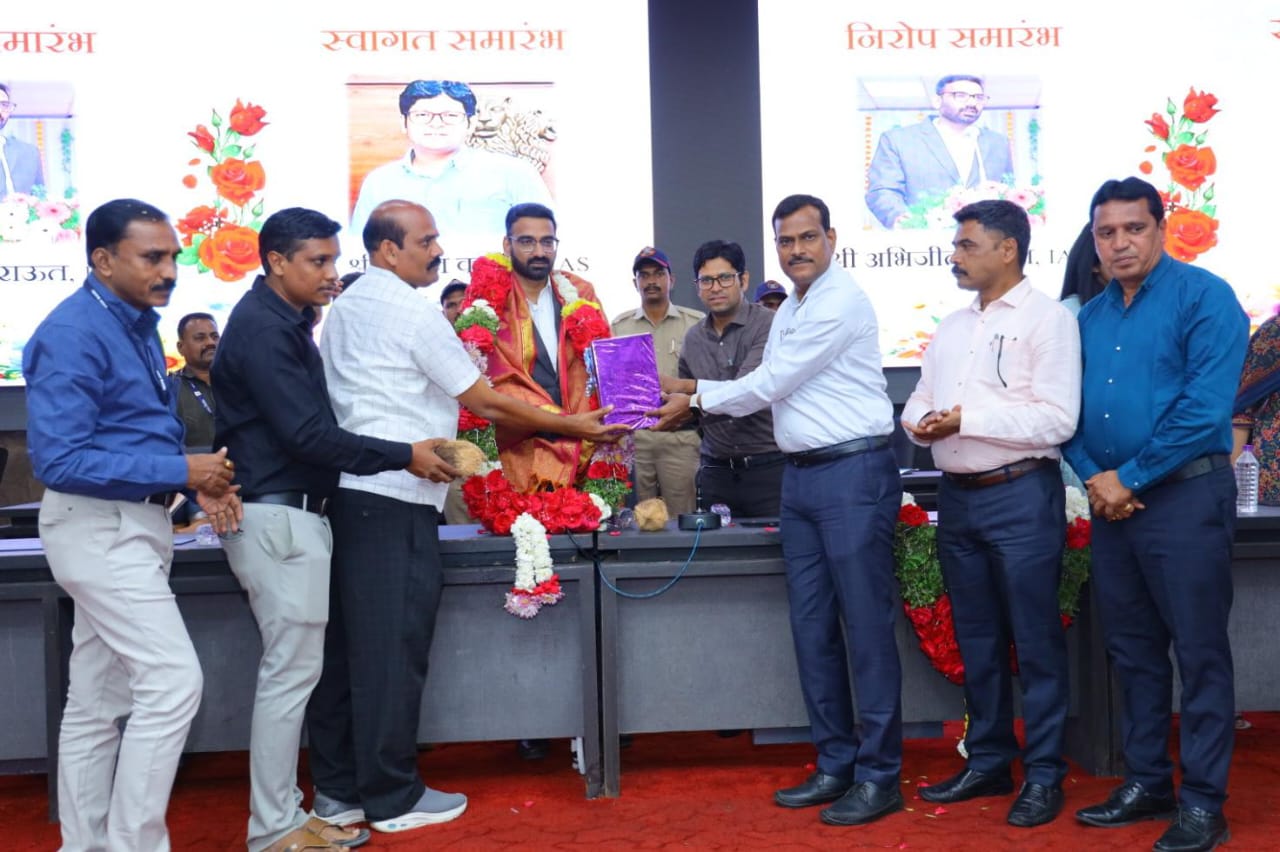 नांदेड जिल्हाधिकारी कार्यालयाच्या नियोजन भावनमध्ये आज नवनियुक्त जिल्हाधिकारी राहुल कर्डिले यांचा स्वागत समारंभ व मावळते जिल्हाधिकारी तथा संभाजीनगर येथील वस्तू व सेवा कर सह आयुक्त अभिजीत राऊत यांचा निरोप समारंभ महसूल व अन्य कर्मचाऱ्यांमार्फत आयोजित करण्यात आला होता.