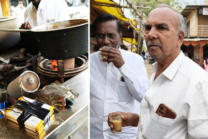 बसस्थानक परिसरातील मार्कंडेय टी अँड टिफिन सेंटरचे चालक अमोल बद्दापूरवार यांनी हा अनोखा प्रयोग साकारला आहे. तीन मोबाईल बॅटऱ्यांमधून तयार होणाऱ्या वीजेच्या साहाय्याने डीसी फॅन आणि हेअर सेटिंग मशीन वापरून त्यांनी कोळसा-लाकडाची चूल पेटवण्याची नवी पद्धत विकसित केली आहे.