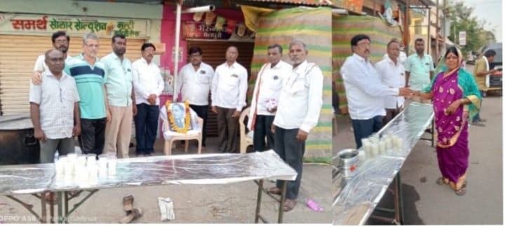 या मान्यवरांच्या हस्ते सुरूवात करण्यात आली. यावेळी मुख्याध्यापक गादेकर दत्ता , अरविंद शिंदे , डी. एम. , मारोती भोंग , ज्ञानेश्वर बाबळे , दुबेवाड , राजू , प्रशांत पेंटर यांच्या सह अनेक मित्र परिवार व पाहुणे मंडळी उपस्थित होते.यावेळी अनेकांनी थंड मठाचा आनंद घेतला.या उपक्रमाचे कौतुक केले जात आहे.