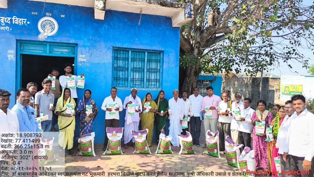 उस्माननगर l कृषी विभाग यांच्या महाडीबीटी पोर्टल वर ऑनलाईन केलेल्या शेतकरी गटांतील निवडप्रक्रिया मधून भुकमारी ता.कंधार येथील डॉ बाबासाहेब आंबेडकर स्वयंसहाय्यता बचत गट यांची निवड करून २०२५ – २६ बियाण्याचे वाटप करण्यात आले.