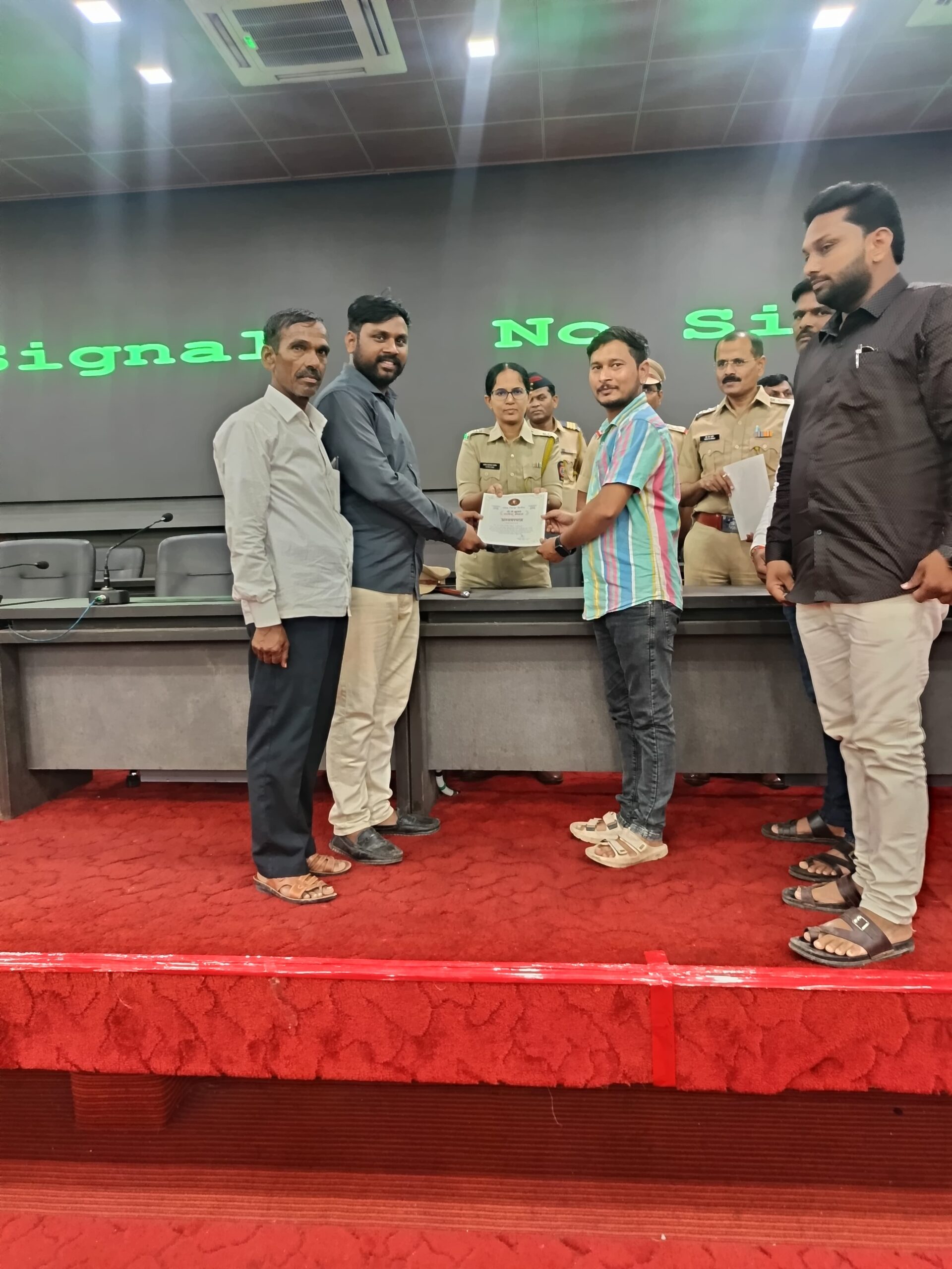उस्माननगर l सामाजिक बांधिलकी आणि पर्यावरण पुरकतेचा संदेश देत श्री गणेश उत्सव २०२५ मिरवणुकीमध्ये डीजे मुक्त , डाॅल्बी, कर्कश आवाजाचा वापर न करता पर्यावरण पुरक मुक्त मिरवणूक काढल्या बध्दल उस्माननगर ( मोठी लाठी ) ता. कंधार येथील वक्रतुंड गणेश मंडळाच्या पदाधिकाऱ्यांनी यंदाच्या गणेशोत्सवात डीजे मुक्त असा ऐतिहासिक निर्णय घेतला. महाराष्ट्र पोलीस दल व नांदेड जिल्हा पोलीसांच्या आणि उस्माननगर पोलिसांच्या आवाहनाला प्रतिसाद देऊन उत्सव शांततेत काढल्याबद्दल नांदेड जिल्ह्यांचे पोलिस अधीक्षक श्री अविनाश कुमार, अतिरिक्त पोलीस अधीक्षक अर्चना पाटील यांच्या हस्ते प्रशस्तीपत्र देऊन गौरव करण्यात आला. व मंडळाच्या पदाधिकाऱ्यांचे अभिनंदन करण्यात आले.