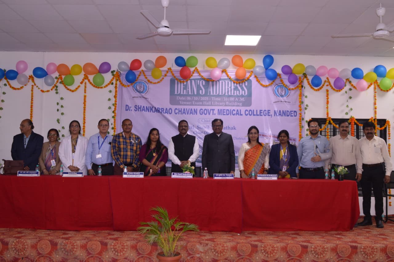 नांदेड| डॉ. शंकरराव चव्हाण शासकीय वैद्यकीय महाविद्यालय, विष्णूपुरी येथे नवीन प्रवेशित एम.बी.बी.एस. (2025-26) विद्यार्थ्यांसाठी आयोजित ‘Dean’s Address’ हा स्वागत व मार्गदर्शनपर कार्यक्रम उत्साहात संपन्न झाला. या कार्यक्रमाच्या अध्यक्षस्थानी संस्थेचे अधिष्ठाता डॉ. सुधीर भास्करराव देशमुख यांनी भूषविले, तर प्रमुख पाहुणे म्हणून जिल्हा व सत्र न्यायालय, नांदेडचे प्रधान जिल्हा न्यायाधीश सुनिल वेदपाठक उपस्थित होते.