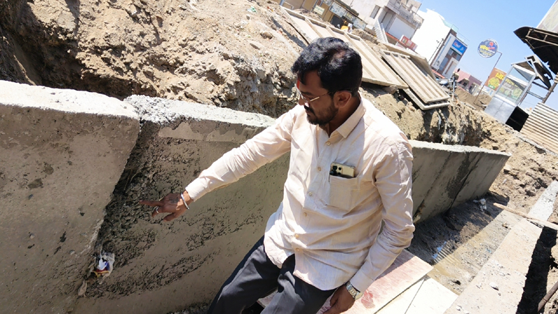 यामुळे नालीच्या भिंतींमध्ये आवश्यक त्या प्रमाणात गज व साहित्याचा वापर न झाल्याने कामाचा दर्जा अत्यंत खालावला आहे. काही ठिकाणी अवघ्या पंधरा दिवसांपूर्वी बांधलेल्या नालीला भगदाड पडले असून तर काही ठिकाणी नालीचे स्लॅब उलले जात असल्याचेही दिसून आले आहे.