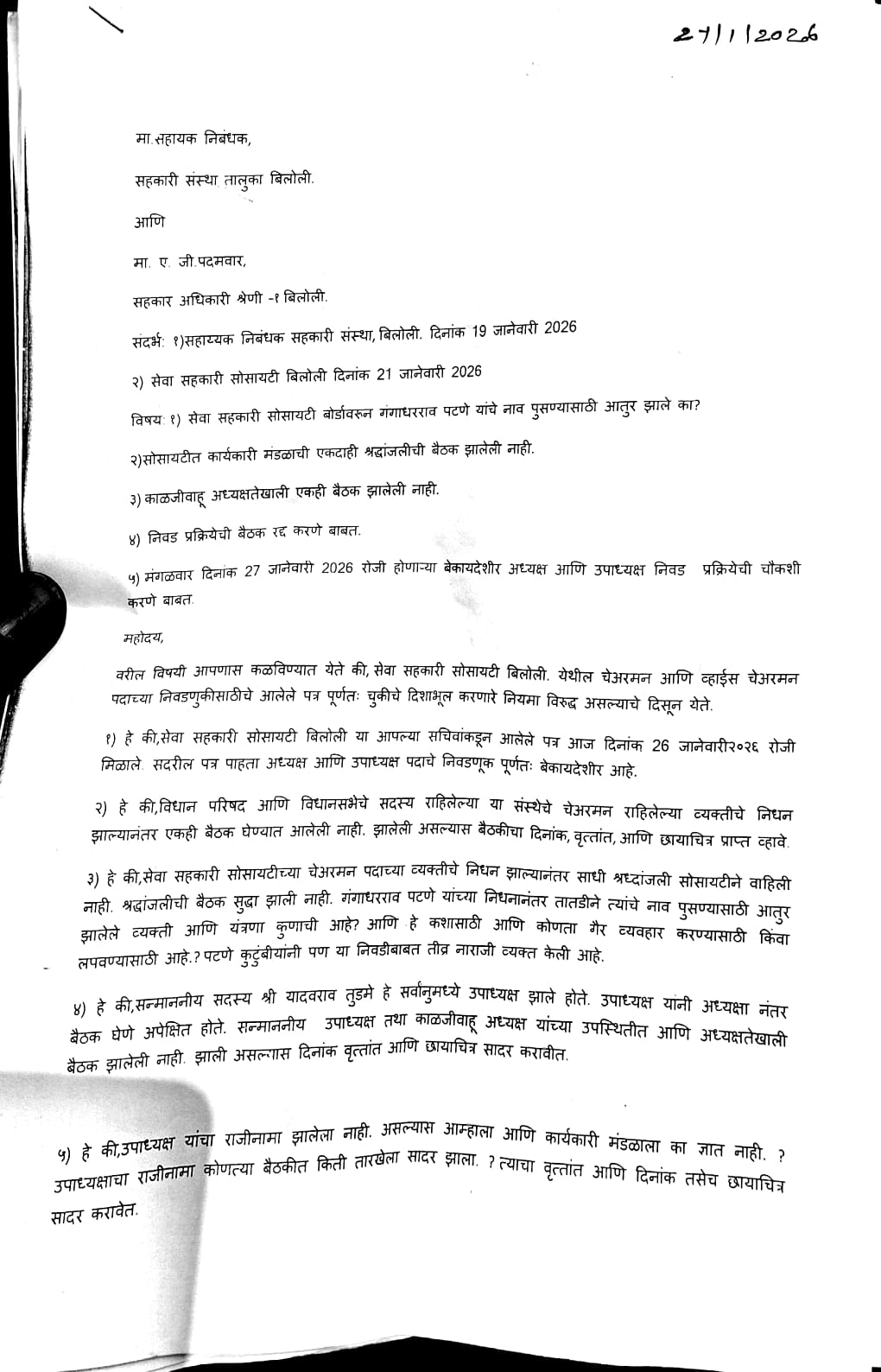 दरम्यान, उपाध्यक्षांनी कार्यकारी मंडळाकडे अधिकृत राजीनामा न देता निवड प्रक्रिया कशी राबवली जात आहे, असा सवाल उपस्थित करण्यात आला होता. तसेच बेकायदेशीर प्रक्रिया असूनही सहकार विभाग दुर्लक्ष का करत आहे, असा थेट प्रश्नही संचालकांनी उपस्थित केला होता व संबंधितांविरुद्ध कारवाईची मागणी करण्यात आली होती.