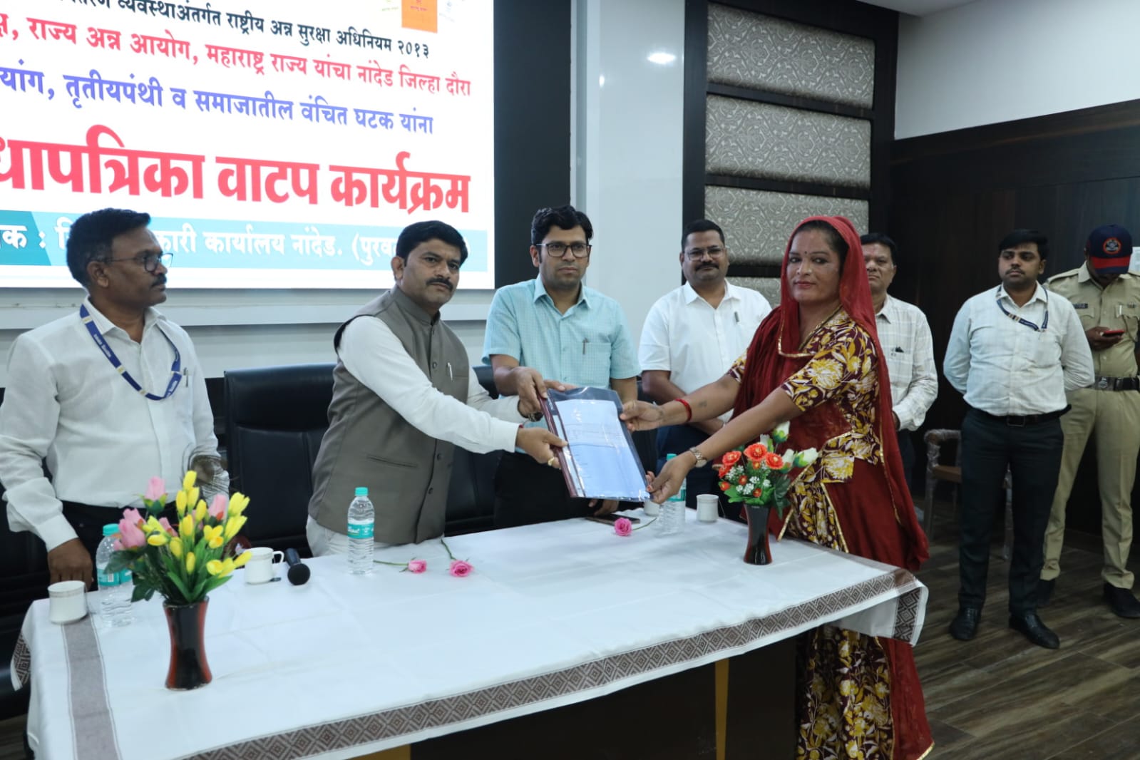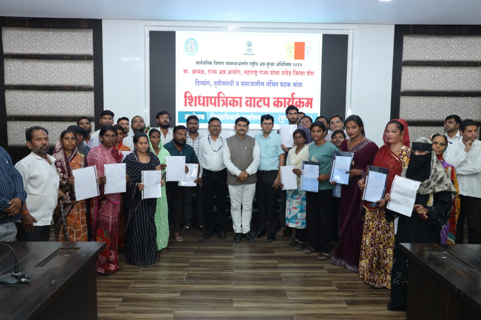 यामध्ये देविदास गंधकावड, बिजली शहानूर बक्श, इरम फरीदा बकश या तृतीयपंथी व मुन्नी शेख हुजूर, गोदावरी राऊत, पुंडलिक कोडिंबा मामीलवाड, शिवनंदाबाई नागोराव जोगदंड, वसीम खान, चंदाप्रकाश पाटणी, समरीन बेगम, वंदना आदित्य पाटील, शशिकला मारोती स्वामी, फहरीन बेगन, नसरीन बेगम, मुख्तार चाँद, मोहम्मद हाजी, मौहमद बाकर ईस्माईल यांना तर अर्धापूर तालुक्यातील सय्यद शाहीन सय्यद मुजीब, शेख सुलतान शेख शबीर, सुमन चांदु खरुसकर, सुनिता रामकिशन सरवदे, प्रिती बाळू लोणे, रेखा काशिनाथ वाघमारे, शिवकन्या परमेश्वर कपाटे, प्रमिला दिलीप कांबळे यांना शिधापत्रिका वाटप करण्यात आल्या.