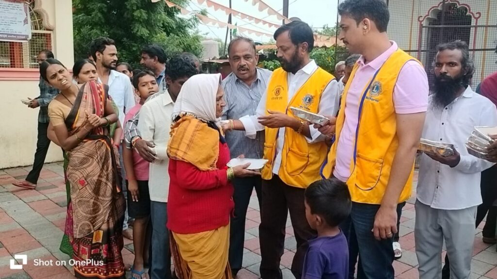 मंगळवारी दुपारी दिलीप ठाकूर,लायन्स क्लब नांदेड सेंट्रलचे अध्यक्ष शिवाजीराव पाटील,सचिव गौरव दंडवते,कोषाध्यक्ष दिपेश छेडा, संतोष भारती, सुरेश शर्मा, विलास वाडेकर,सुरेश बाबानी यांनी नल्लागुट्टा चाळ, देगाव चाळ, मार्कंडेय मंदिर परिसरात घराघरात जाऊन जेवणाचे डबे वाटप केले. अनेक घरात गुडघ्या इतके पाणी साचले असल्यामुळे नागरिकांचे अतोनात नुकसान झाले होते. एकाही घरात अन्न शिजले नव्हते. त्यामुळे वरण भात ,भाजी चार पोळी असलेला लायन्सचा डबा मिळाल्यामुळे पूरग्रस्तांनी पोटभर जेवण केले.व्यंकटेश पंजाला, अनिल गाजूला, तुम्मा भास्कर, शिवरात्री सत्यम, एलगंटी गोविंदा, गणेश शेट्टी, नक्का किरण, बत्तीनी साई, शिवरात्री श्रीनिवास, लोकम्म मनोहर, ताल्ला रमेश यासह अनेक नागरिकांनी लायन्स परिवाराला धन्यवाद दिले.