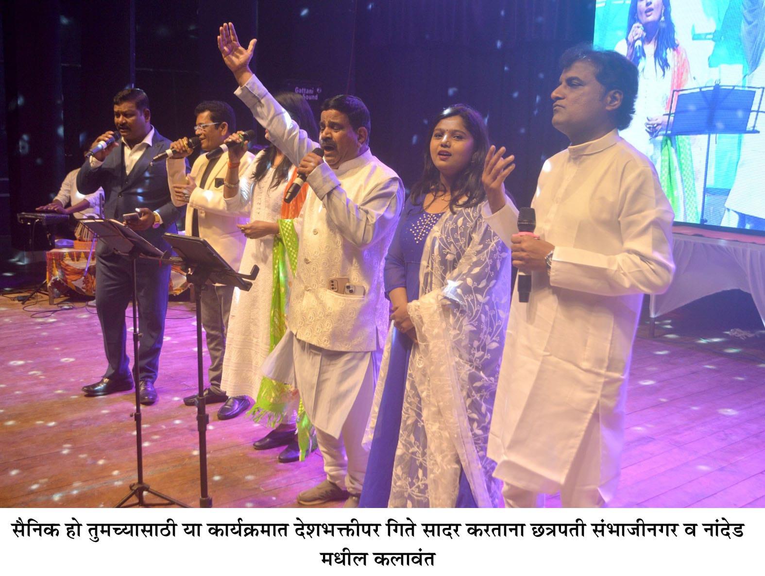 या कार्यक्रमाचे उत्कृष्ट निवेदन डॉ.सौ.वैशाली गोस्वामी यांनी केले तर छत्रपती संभाजीनगरच्या सरला शिंदे, गौरव पवार, राहुल वाव्हुळे, तर नांदेडच्या श्रीरंग चिंतेवार आणि पौर्णिमा कांबळे यांनी देशभक्तीच्या रचना सादर करुन नांदेडकरांची मने जिंकली. या कार्यक्रमाचे दिग्दर्शन अॅड.गजानन पिंपरखेडे व बापू दासरी यांचे होते. तर संगीतसाथ छत्रपती संभाजीनगरच्या राजू जगधने, राजेश भावसार, अभिजित शिंदे, गणेश चव्हाण यांनी केली. नव्या उमेदीच्या मराठवाड्यातील प्रथित यश व्हायोलिन वादक डॉ.गुंजन शिरभाते हिने सागरा प्राण तळमळला हे गित व्हायोलिनवर सादर करुन रसिकांची मने जिंकली.