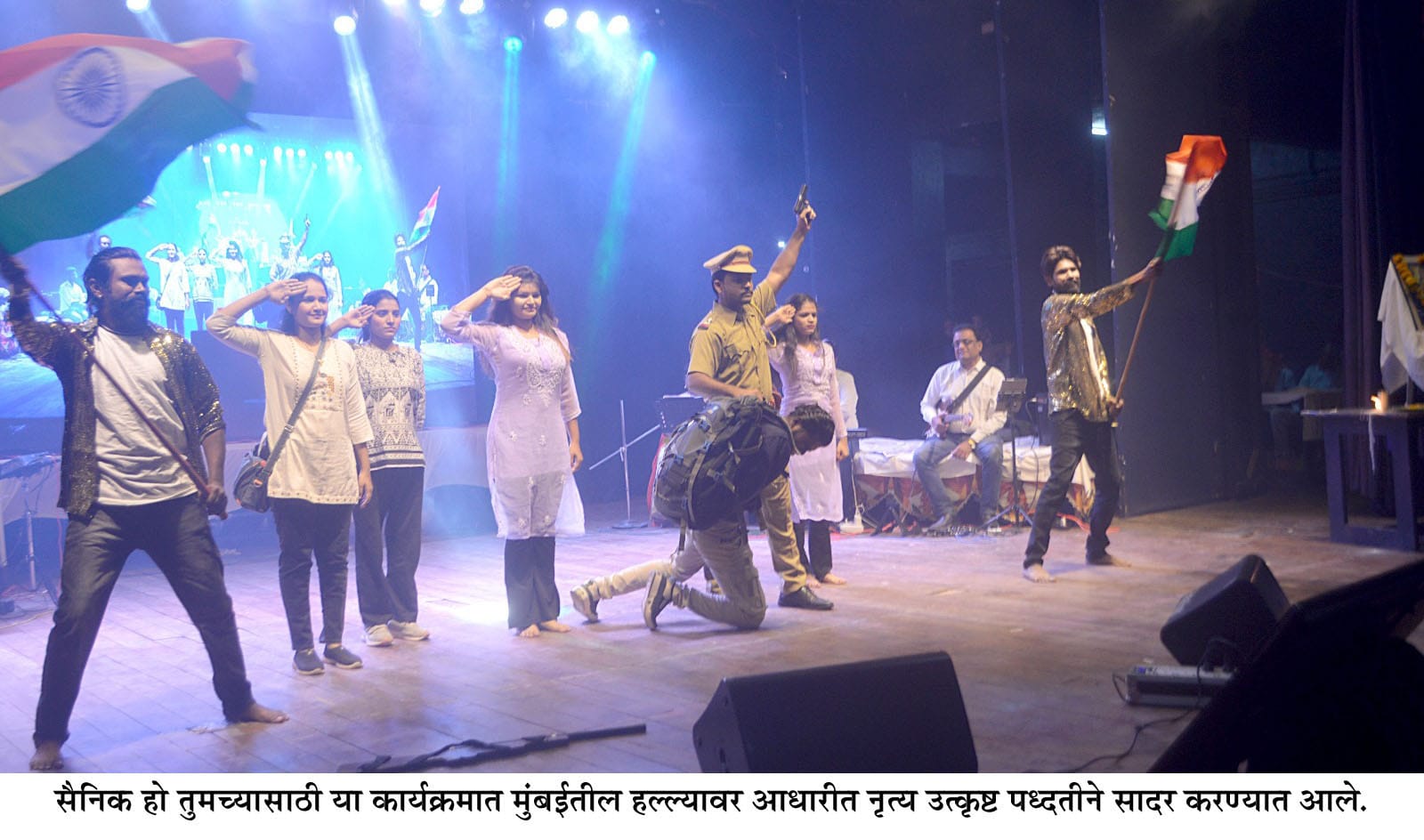 यावेळी छत्रपती संभाजीनगरच्या आणि नांदेडच्या कलावंतांनी वेगवेगळी देशभक्तीपर गिते सादर करुन तसेच मुंबईचा अतिरेकी हल्ला यावरील जिवंत देखावा सादर करुन कलावंतांनी नांदेडकरांची मने जिंकली.