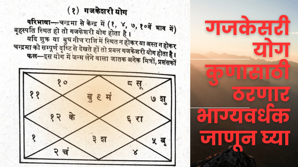 рд╡реИрджрд┐рдХ рдЬреНрдпреЛрддрд┐рд╖рд╢рд╛рд╕реНрддреНрд░рд╛рдд рдЧрдЬрдХреЗрд╕рд░реА рдпреЛрдЧ рд╣рд╛ рдЕрддреНрдпрдВрдд рд╢реБрдн, рдкреНрд░рднрд╛рд╡реА рд╡ рджреБрд░реНрдорд┐рд│ рдпреЛрдЧ рдорд╛рдирд▓рд╛ рдЬрд╛рддреЛ. рдЧреБрд░реБ (рдЬреНрдЮрд╛рди, рд╕рдВрдкрддреНрддреА, рд╡рд┐рд╕реНрддрд╛рд░) рдЖрдгрд┐ рдЪрдВрджреНрд░ (рдорди, рд▓реЛрдХрдкреНрд░рд┐рдпрддрд╛, рд╕реБрдЦ) рдпрд╛рдВрдЪреНрдпрд╛ рдХреЗрдВрджреНрд░рд╕реНрдерд╛рдиреА рд╣реЛрдгрд╛рд▒реНрдпрд╛ рд╕рдВрдпреЛрдЧрд╛рдореБрд│реЗ рд╣рд╛ рдпреЛрдЧ рдирд┐рд░реНрдорд╛рдг рд╣реЛрддреЛ. рд╣рд╛ рдпреЛрдЧ рд░рд╛рдЬрдпреЛрдЧрд╛рдЪреНрдпрд╛ рддреЛрдбреАрд╕рддреЛрдб рдорд╛рдирд▓рд╛ рдЬрд╛рддреЛ.