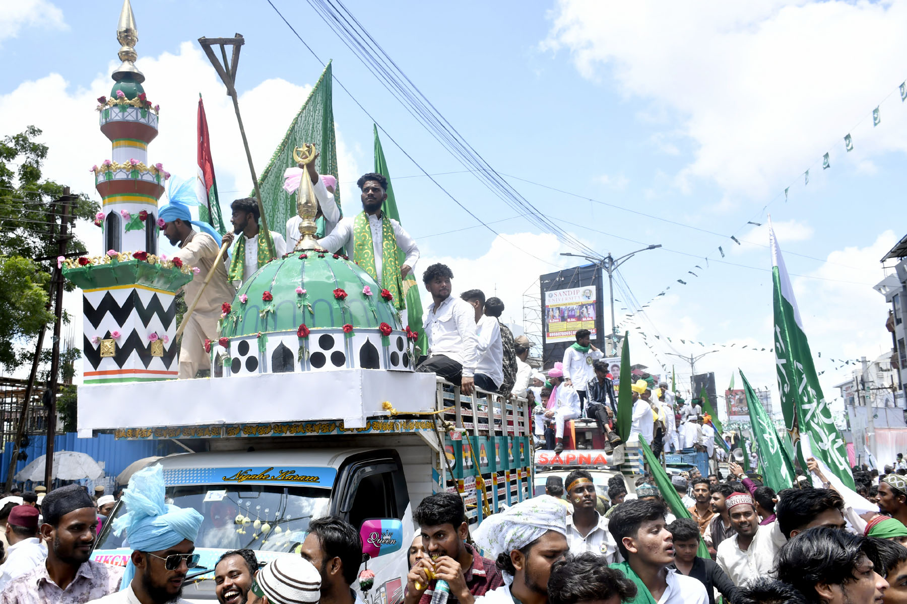 नांदेड| शहरात सोमवारी जश्ने ईद मिलाद उन नबी या निमित्ताने ऐतिहासिक व भव्य मिरवणुकीचे आयोजन करण्यात आले. मिलाद कमिटी तर्फे झालेल्या या मिरवणुकीत हजारो मुस्लिम बांधवांनी उत्स्फूर्त सहभाग नोंदवला.