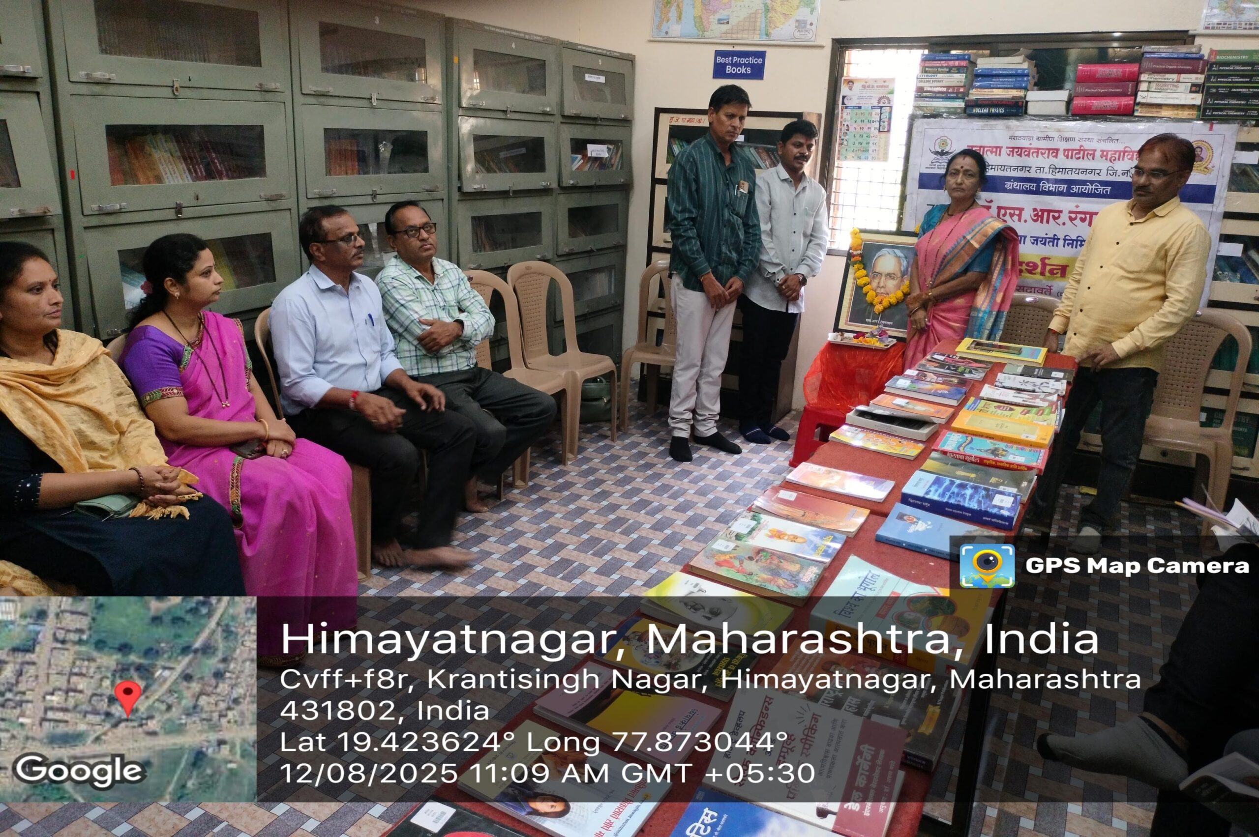 हिमायतनगर l येथील हुतात्मा जयवंतराव पाटील महाविद्यालयाच्या ग्रंथालय विभागाच्या वतीने डॉ. एस. आर. रंगनाथन यांच्या 133 व्या जयंती निमित्त ग्रंथ प्रदर्शन सोहळा आयोजित करण्यात आला. महाविद्यालयाच्या प्राचार्य आदरणीय उज्वला सदावर्ते मॅडम यांच्या अध्यक्षतेखाली कार्यक्रम संपन्न झाला.