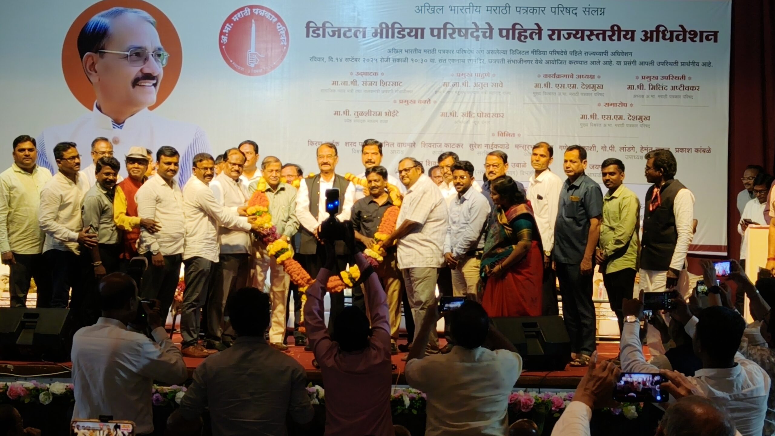ज्येष्ठ पत्रकार धनंजय लांबे यांनी “ए.आय. आणि मराठी पत्रकारिता”, या विषयावर तर डॉ.अनिल फळे यांनी “डिजिटल मीडिया : श्वास महाराष्ट्राचा”, या विषयावर मार्गदर्शन केले. प्रमुख पाहुण्यांचे स्वागत अध्यक्ष बालाजी सूर्यवंशी, सचिव प्रकाश भगनुरे, कार्याध्यक्ष कानिफ अन्नपूर्णे, मुंबई प्रतिनिधी सुनील वाघमारे, उपाध्यक्ष महादेव जामनिक, कोषाध्यक्ष ब्रह्मानंद चक्करवार, धनंजय लांबे, डॉ. अनिल फळे, डॉ.मोहम्मद अब्दुल कदीर यांनी केले.