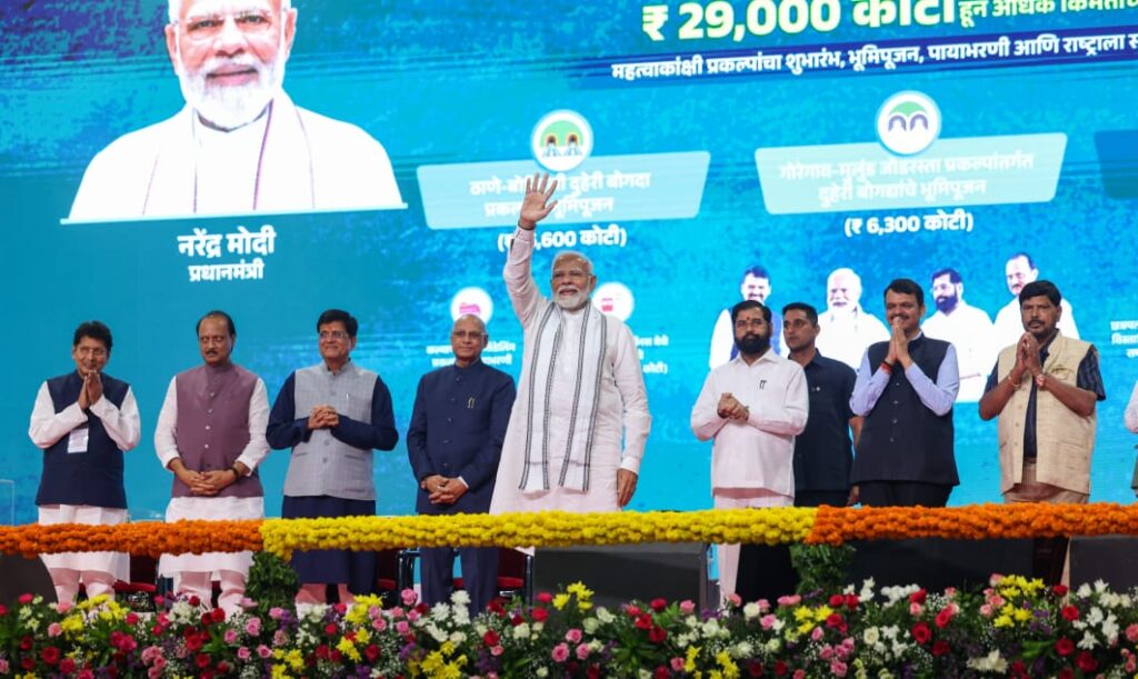 मुंबई| भारताचे पंतप्रधान नरेंद्र मोदी यांनी दि. १३ जुलै २०२४ रोजी मुंबई, महाराष्ट्र येथे ९५६ कोटी रुपयांच्या बहुविध रेल्वे प्रकल्पांची पायाभरणी तसेच राष्ट्राला समर्पण केले. माननीय पंतप्रधानांनी कल्याण यार्ड रीमॉडेलिंग आणि तुर्भे येथील गती शक्ती मल्टी मॉडेल कार्गो टर्मिनलची पायाभरणी केली.
