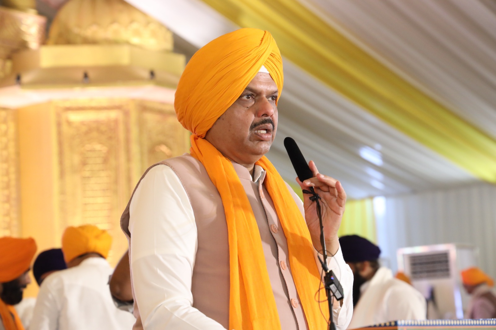 नांदेड येथील मोदी मैदानावर आयोजित ‘हिंद-दी-चादर’ श्री गुरू तेग बहादुर साहिबजी यांच्या 350 व्या शहीदी समागम कार्यक्रमात ते बोलत होते. या भव्य समागमास लाखो भाविकांची उपस्थिती लाभली. यावेळी उपमुख्यमंत्री अजित पवार, आंध्र प्रदेशचे उपमुख्यमंत्री कोनिडला पवन कल्याण, जलसंपदा मंत्री गिरीश महाजन, पशुसंवर्धन मंत्री पंकजा मुंडे, सहकार मंत्री बाबासाहेब पाटील, पालकमंत्री अतुल सावे, दिल्ली सरकारचे मंत्री सरदार मनजिंदर सिंग सिरसा, माजी मुख्यमंत्री व खासदार अशोक चव्हाण, खासदार डॉ. अजित गोपछडे, डॉ. भागवत कराड, आमदार प्रताप पाटील चिखलीकर, बालाजी कल्याणकर, श्रीजया चव्हाण, जितेंद्र अंतापूरकर, रवींद्र चव्हाण, राज्य अल्पसंख्याक विकास महामंडळाचे अध्यक्ष ललित गांधी, मुख्यमंत्री कार्यालयाचे प्रधान सचिव श्रीकर परदेशी, अल्पसंख्याक विभागाचे सचिव रुचेश जयवंशी, विभागीय आयुक्त जितेंद्र पापळकर, विशेष पोलीस उपमहानिरीक्षक शहाजी उमाप, जिल्हाधिकारी राहुल कर्डिले, पोलिस अधीक्षक अबिनाश कुमार, गुरुद्वारा बोर्डाचे प्रशासक डॉ. विजय सतबीर सिंग, शहीदी समागम समितीचे राज्य समन्वयक रामेश्वर नाईक यांची उपस्थिती होती.