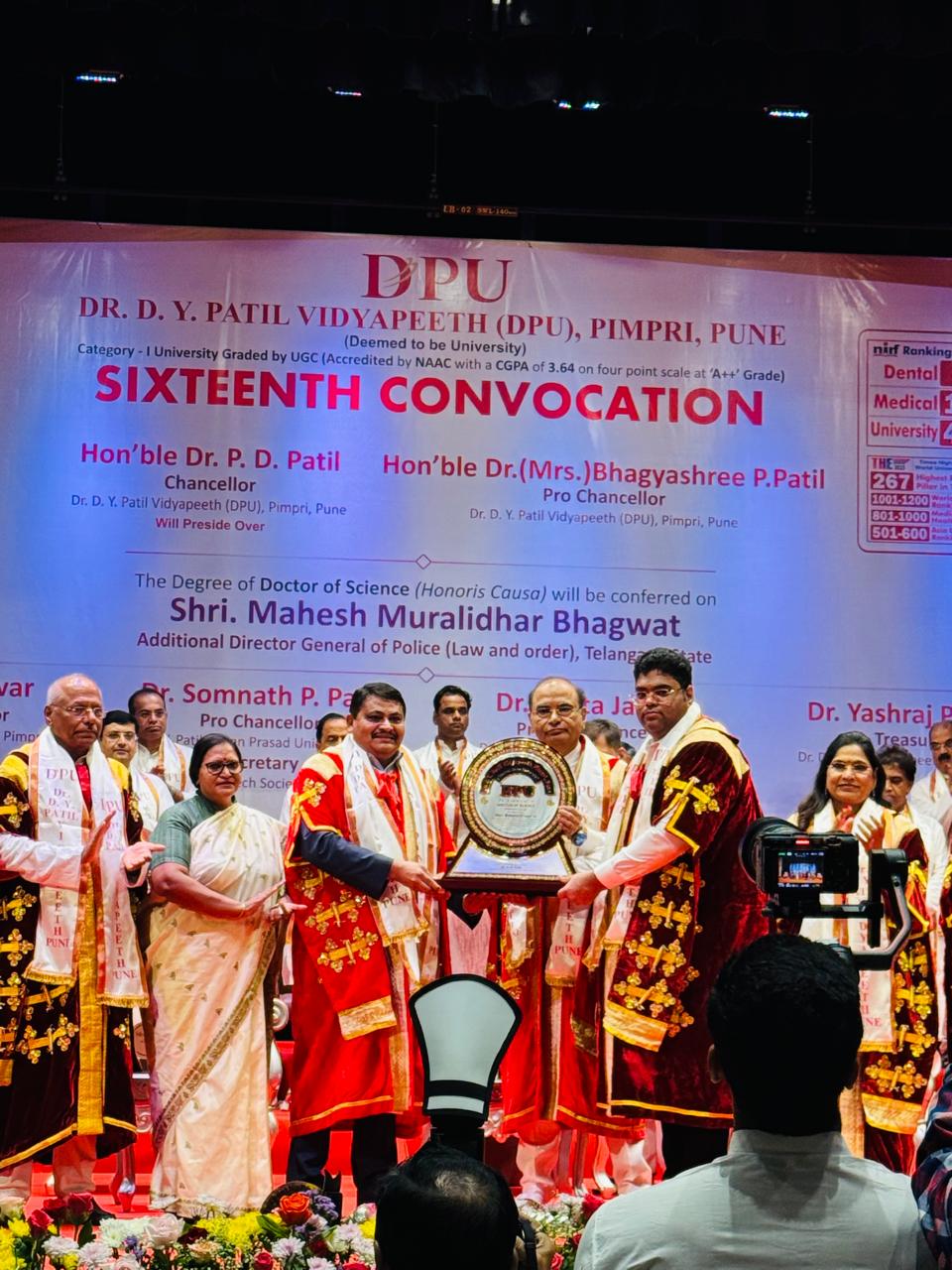 नांदेड/हैद्राबाद। मूळचे महाराष्ट्राचे असलेले व सध्या तेलंगणात अतिरिक्त पोलिस महासंचालक पदी कार्यरत असलेले महेश भागवत यांना डॉ डी वाय पाटील विद्यापीठातर्फे डॉक्टर ऑफ सायन्स ही मानद डॉक्टरेट पदवी प्रदान करण्यात आली.