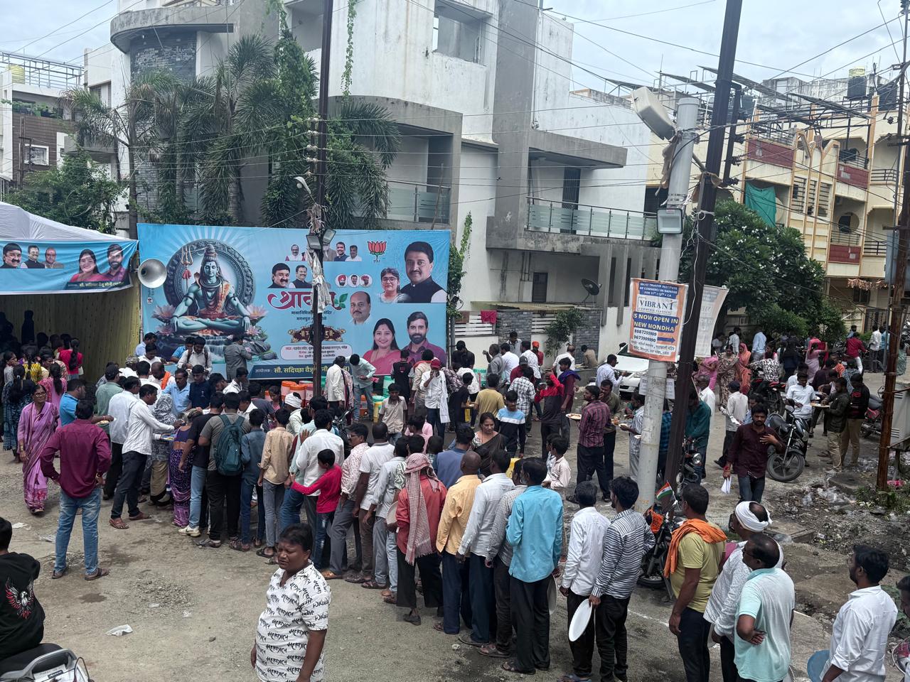 नांदेड l येथील मगनपुरा – नवा मोंढा भागातील महालिंगेश्वर महादेव मंदीर येथे श्रावणमासानिमित्ताने बुधवार दि. २० ऑगस्ट रोजी महाप्रसादाचे आयोजन भाजपा सदस्य तथा सामाजिक कार्यकर्त्या सौ सदिच्छा वैजू सोनी पाटील यांच्या वतीने आयोजन करण्यात आले होते यावेळी नांदेड वाघाळा महानगरपालिकेचे स्थायी समितीचे माजी सभापती किशोर स्वामी , स.विरेंद्रसिंघ गाडीवाले, नगरसेवक प्रतिनिधी भालचंद्र पवळे यांच्यासह भाजपाचे कार्यकर्ते विशाल शुक्ला, प्रशांत अंकरला ,स.जसपालसिंघ कोल्हापुरे,बैजू सोनी, सौ.सदिच्छा सोनी -पाटील यांची प्रमुख उपस्थिती होती.