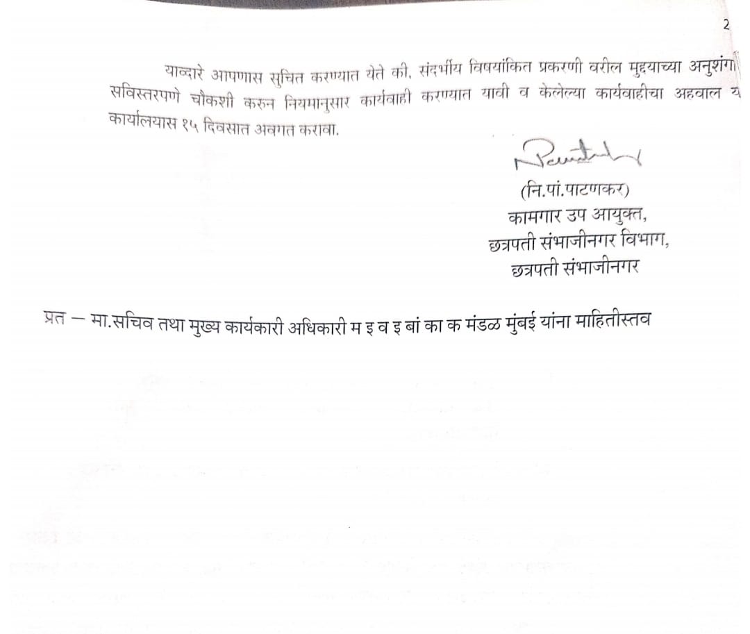 नांदेड l इमारत व इतर बांधकाम कामगार कल्याणकारी मंडळाच्या निधीतून बोगस कामगारांच्या नावावर ७९ लाख ६९ हजार रुपयांचा अपहार झाल्याचा गंभीर प्रकार उघडकीस आला आहे. या प्रकरणी संबंधित अधिकारी व कर्मचाऱ्यांवर फौजदारी गुन्हे दाखल करण्याचे आदेश छत्रपती संभाजीनगरचे कामगार उपायुक्त श्री. नि. पा. पाटणकर यांनी सहाय्यक कामगार आयुक्त, नांदेड यांना दिले आहेत.