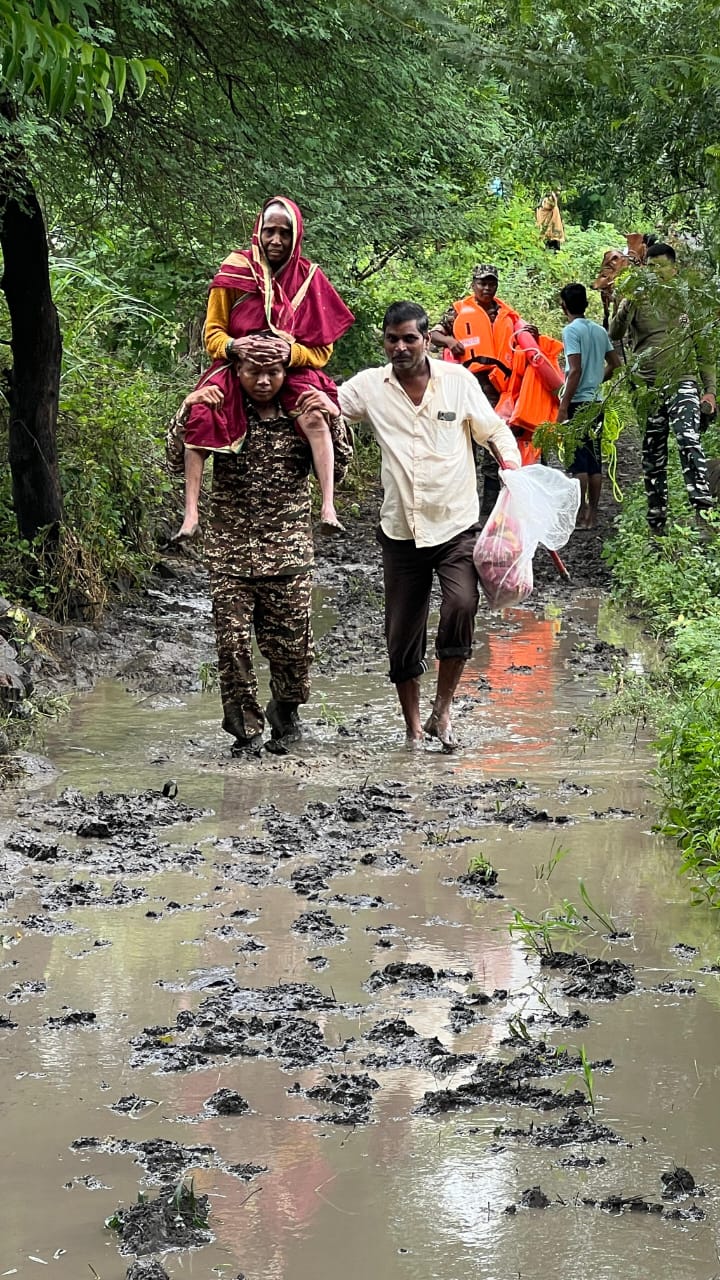 नांदेड जिल्ह्यात अतिवृष्टीमुळे बऱ्याच गावात पुराचे पाणी आले. अनेक नागरिकांना स्थानिक प्रशासनाच्या वतीने बचाव कार्य करुन सुरक्षित ठिकाणी हलविण्यात येत आहे. नांदेड येथील सीआरपीएफ च्या मदतीने नायगाव तालुक्यातील कुंचेली येथील 80 नागरिकांना सुरक्षितस्थळी स्थलांतरीत केले आहे.