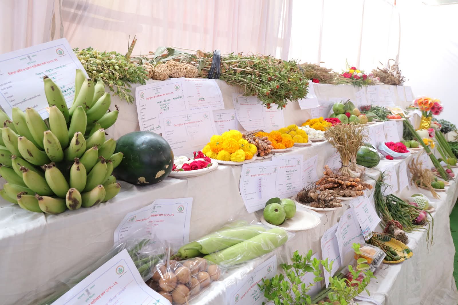महोत्सवात गहू, ज्वारी, तांदूळ, तूर, मूग, उडीद, चनाडाळ, हळद, मिरची, मसाले, गूळ, सेंद्रीय डाळी, मध, गुळाचा पाक, चटणी, लोणचे, पापड, कुरडई तसेच विविध फळे व भाजीपाला थेट विक्रीसाठी उपलब्ध आहेत. तसेच लाकडी घाण्याचे करडई, भुईमूग, जवस व तिळाचे तेल, बांबू वस्तू, केळी वेफर्स, डिंक व बिब्याची गोडंबी यांचेही प्रदर्शन व विक्री करण्यात येत आहे.