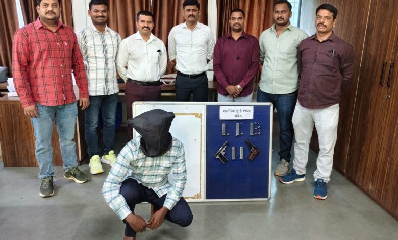 नांदेड | जिल्ह्यातील गुन्हेगारीवर आळा घालण्यासाठी स्थानिक गुन्हे शाखेने (LCB) धडक कारवाई करत एका आरोपीला गावठी पिस्तूल व जिवंत काडतुसेसह अटक केली आहे. या कारवाईत एकूण ५९ हजार रुपयांचा मुद्देमाल जप्त करण्यात आला आहे.