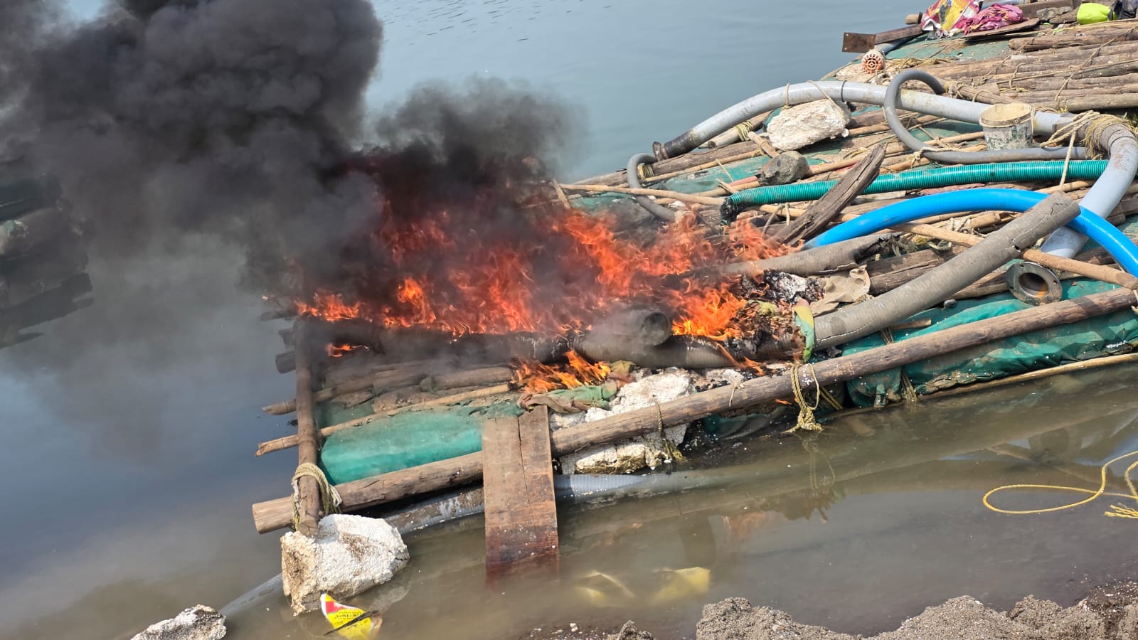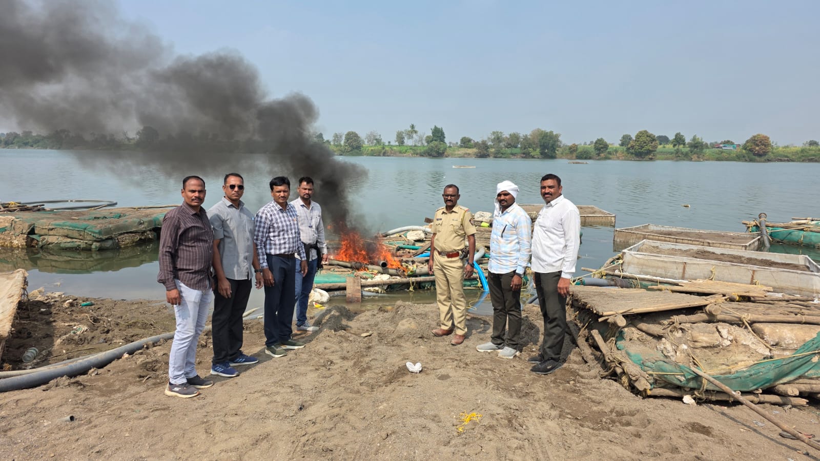 छाप्यादरम्यान नदीपात्रातून रेती उपशासाठी वापरण्यात येणारे तराफे व इंजिन पंचांसमक्ष जाळून नष्ट करण्यात आले, तसेच नदीकिनारी साठवून ठेवलेली मोठ्या प्रमाणातील रेती जप्त करून खाजगी वाहनाद्वारे पोलीस ठाण्यात जमा करण्यात आली. या कारवाईत अंदाजे ४५ ब्रास रेती (किंमत सुमारे २ लाख २५ हजार रुपये), ४ इंजिन (किंमत १२ लाख रुपये) व इतर साहित्य असा एकूण ५४ लाख २५ हजार रुपयांचा मुद्देमाल जप्त करण्यात आला आहे.