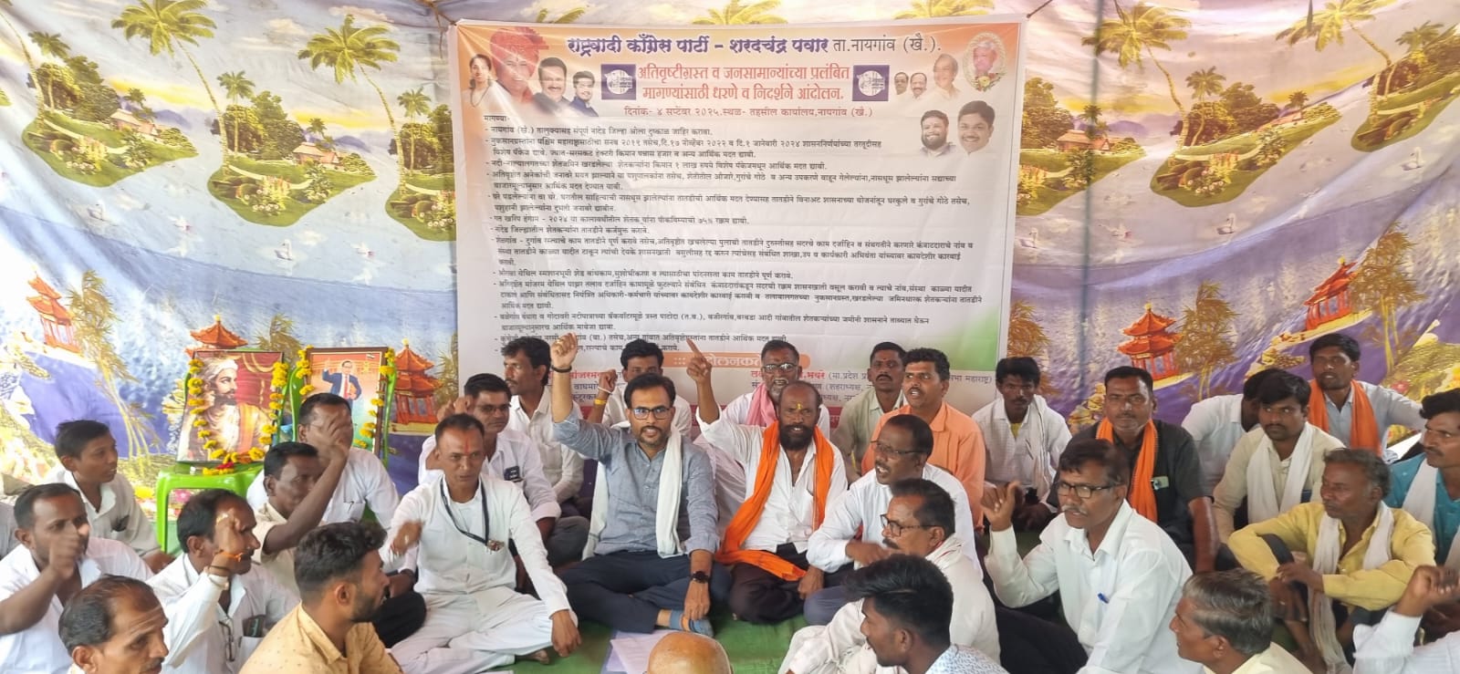 या आंदोलनाचे नेतृत्व राष्ट्रवादी काँग्रेस पार्टी-शरदचंद्र पवार पक्षाचे नायगांव तालुकाध्यक्ष पांडुरंग शिंदे मांजरमकर, राष्ट्रवादी किसान सभेचे माजी प्रदेश प्रतिनिधी लक्ष्मणराव मा.भवरे, तालुका सरचिटणीस किरण वाघमारे,तालुका उपाध्यक्ष बालाजी कदम कुंटूरकर, शहराध्यक्ष संजय पाटील चव्हाण आदींनी सामूहिक पद्धतीने केले.
