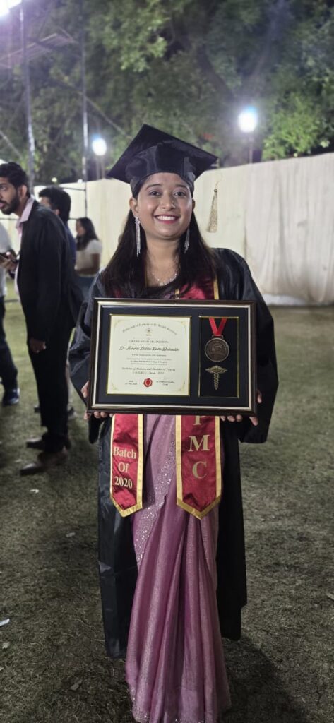 बालवयातच वडिलांचे छत्र हरपल्यानंतर अनेक अडचणींना सामोरे जात तिने शिक्षणाची वाट खंडित होऊ दिली नाही. कठीण परिस्थितीला सामोरे जात तिने आपले स्वप्न पूर्ण करण्यासाठी सातत्याने प्रयत्न केले. तिच्या अथक परिश्रमांचे फळ म्हणून तिने Dr. Ulhas Patil Medical College & Hospital येथून एमबीबीएस पदवी यशस्वीरित्या पूर्ण केली.