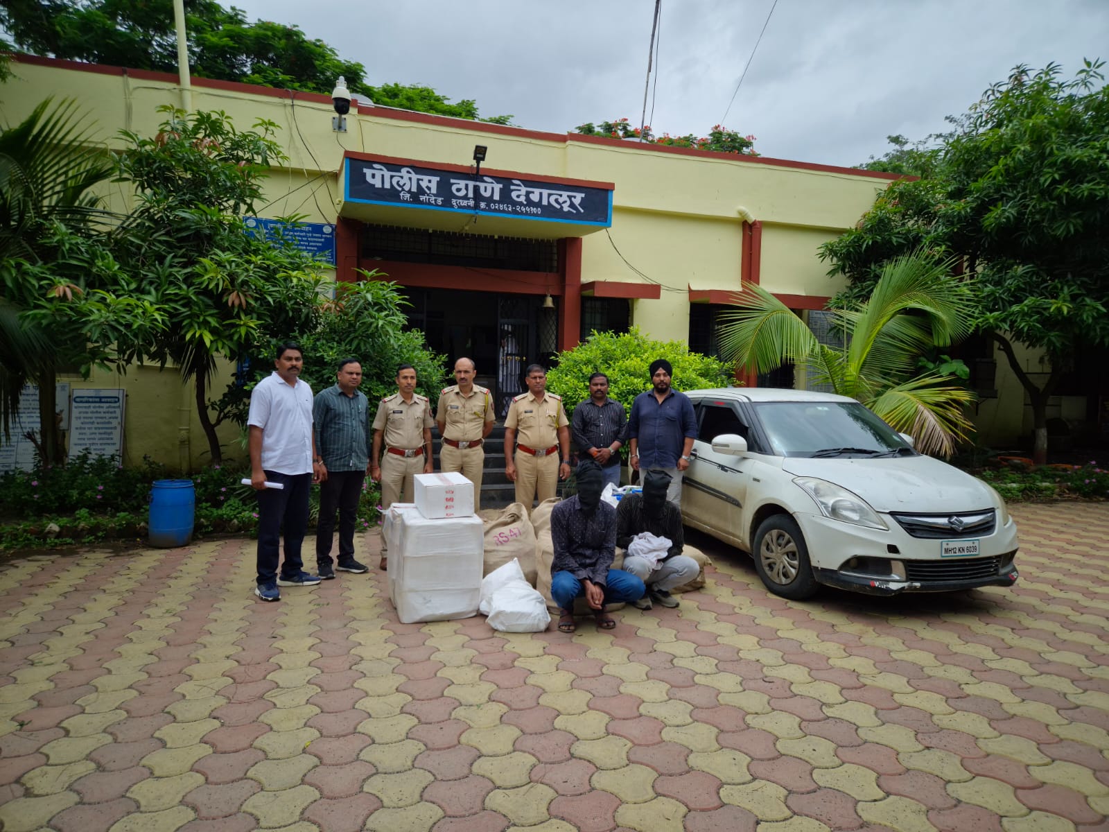 पोलीस अधीक्षक अबिनाश कुमार यांनी ऑपरेशन फलश आउट अंतर्गत अवैध धंद्यांवर कार्यवाही करण्या बाबत पोलीस निरीक्षक देगलूर याना आदेशीत केले होते. त्यावरून गुहा शोध पथकातील अंमलदार याना देगलूर परिसरात अवैध धंदे व चोरी करणार्या आरोपीचा शोध घेण्याकरिता तत्काळ रवाना करण्यात आले होते. गुन्हे शोध पथकातील पोलीस अमलदारानी देगलूर हद्दीतील अवैध धंद्यांची माहिती काढत असताना एक स्विफ्ट डिझायर कार क्रमांक एम एच 12 के एन ६०3९ या गाडीची तपासणी केली.