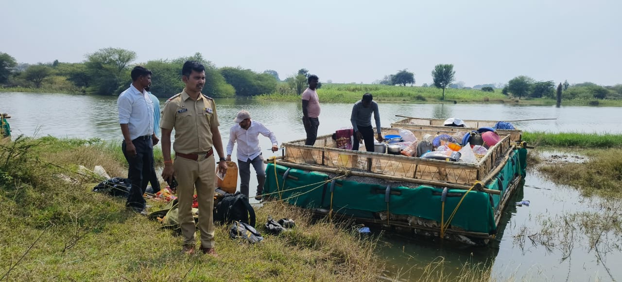 सदर ठिकाणी तराफे व बोट आहे. अशी गोपनिय माहिती मिळाली यावरुन वरिष्ठांना सूचना देवून पंच व महसुलचे अधिकारी, कर्मचारी यांना घेवून छापा मारला. यावेळी ८ लाख रुपयाची एक लोखंडी मोठी बोट आणि ज्यास एक लोखंडी लहान बोट ज्यावर पाईप व इंजिन बसविलेले, ४ लाख रुपयाचे चार तराफे प्रत्येक तराफ्यावर अर्धा, अर्धा ब्रास रेती प्रत्येक ताफ्याची किंमत १ लाख रुपये प्रमाणे, १० हजार रुपयाच्या चार तराफ्या वरील अंदाजे २ ब्रास रेती, ३० हजारांची एक हिरो स्लेंडर कंपनिची काळ्या रंगाची गाडी जिचा पासिंग क्रमांक MH २६ CF ०३०४ असेलेली मिळाली. त्या ठिकाणी एकूण १२,४०,०००/- रुपयाचा मुद्देमाल मिळुन आल्याने सदरचा मुद्देमाल व तराफे पोलीस व महसुलचे अधिकारी यांनी पंचनामा करुन जिलेटिनच्या साह्याने रेतीसह गोदावरी नदीचे बैंक वॉटरच्या पाण्यात जागेवरच नष्ट करण्यात आले.