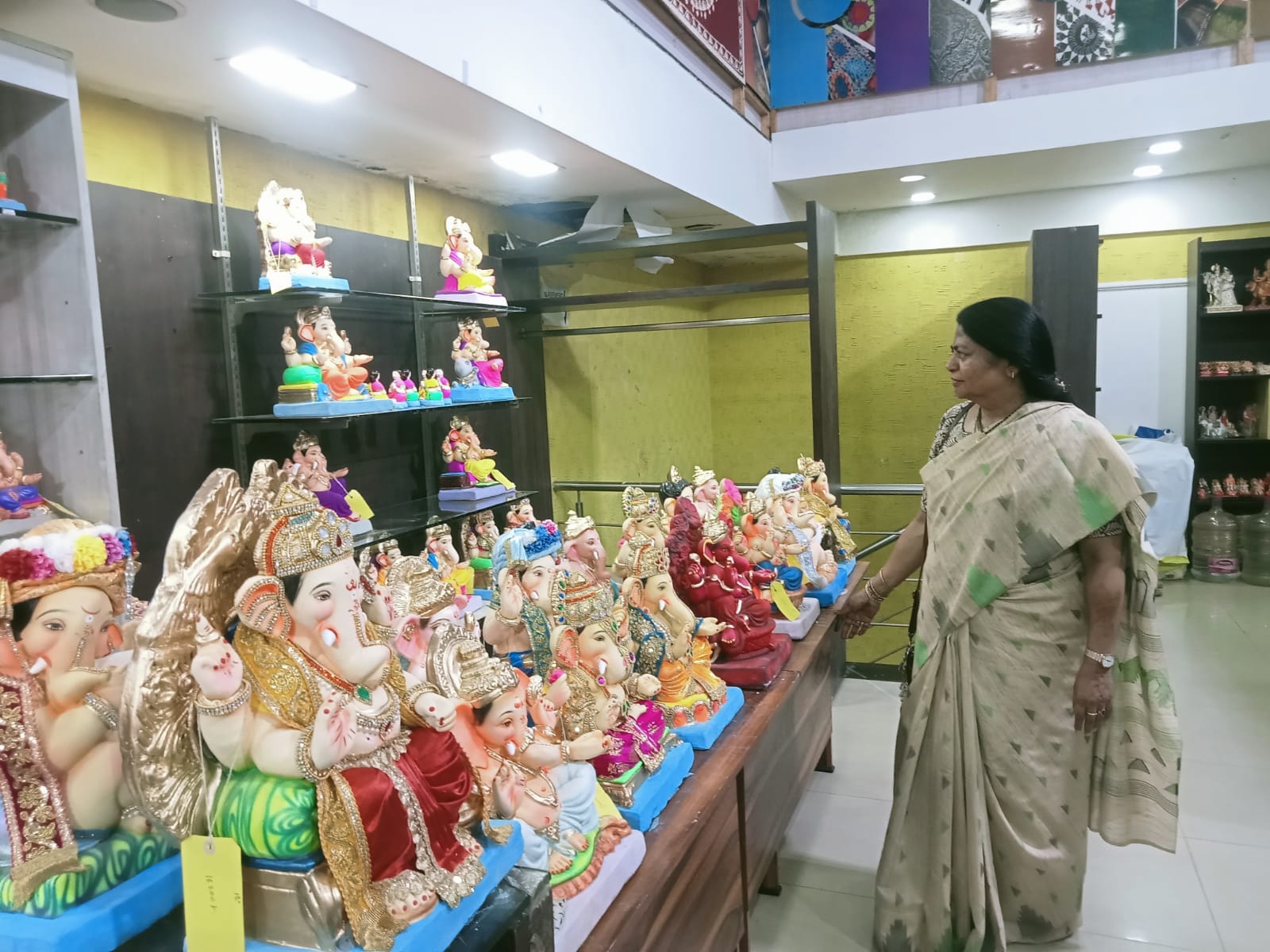 यावेळी ठाण्याचे मूर्तिकार मंदार सुर्यकांत शिंदे यांनी आर. विमला यांना ‘ श्री’ ची मूर्ती भेट देऊन स्वागत व सन्मान केला. मूर्तिकार शिंदे यांच्या कलाकृतींसह अनेक नामवंत मूर्तिकारांच्या मूर्ती या प्रदर्शनात ठेवण्यात आल्या आहेत.