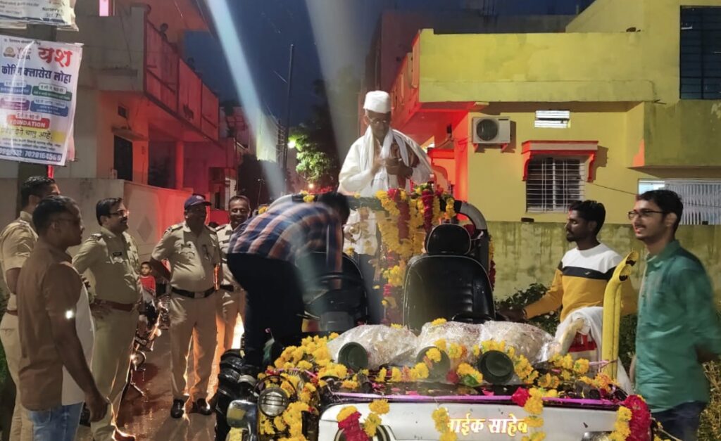 फुलांनी सजविलेल्या उघड्या जीप मधून वाजत गाजत मुख्य रस्त्याने पोलीस गाडी समोर’ सायरन वाजवत ‘एएसआय अशोक केंद्रे यांची फुलांची उधळण करत त्यांच्या घरा पर्यंत मिखणूक काढली घरी नेले. हा सन्मान कर्मचाऱ्यांच्या जीवनात अविस्मरणीयच. पोलीस दलात असे फार क्वचित घडते. सेवा करून ही शेवटी कौतुक होत नाही यांची खंत पोलीस दलातील कर्मचारी- अधिकारी यांना असते. पण एएसआय अशोक केंद्रे भाग्यवान ठरले. . पीआय चिचोलकरांनी त्यांचा सेवापूर्वी गौरव सोहळा’ साजरा केला तो निश्चितच पोलीस दलात एक प्रेरणादायी होय.. अशोक केंद्र व त्यांच्या पत्नी या आदरतिथ्याने भारावून गेल्या त्याचे डोळे पाणावले …असे क्वचित कर्मचाऱ्यांच्या नशिबी येते.