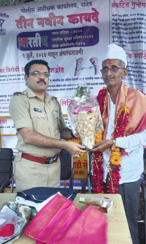 लोहा| पोलीस आपल्या सेवा काळात एकीकडे वरिष्ठ…. …..अधिकारी ..दुसरीकडे पब्लिक याच्या कचाट्यात असतात… पण हल्ली पोलीसींग बदलली…. पोलीस कर्मचारी.. अधिकारी.. एकमेकांच्या सुख-दुःखात.. आनंदात सहभागी होत आहेत. तसे आश्वासक दृश्य लोहा पोलीस ठाण्यात दिसून आले पोलीस निरिक्षक ओमकांत चिंचोलकर यांनी आपले सहकारी सहायक पोलिस उपनिरिक्षक अशोक केंद्र हे ३३ वर्षाच्या सेवेनंतर निवृत’ झाल्यानंतर त्यांचा सपत्नीक सत्कार करत वाजत गाजत त्यांची, उघड्या जीप मधून फुलांची उधळण करत घरापर्यंत मिरवणूक काढली ..पोलिस वाहनांच्या “सायरन “ची सलामी देत अविस्मरणीय सेवापूर्ती गौरव सोहळा सहकारी पोलिसांनी साजरा केला.