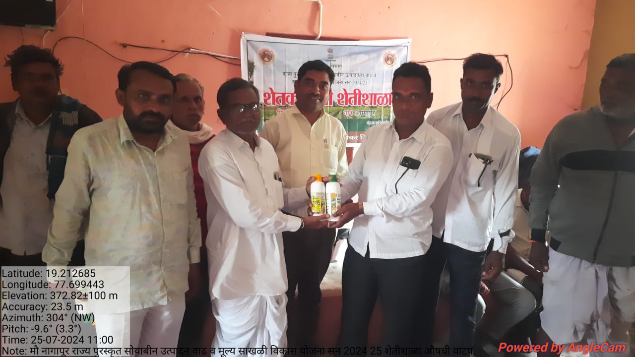 यावेळी येथील कृषी सहाय्यक दिलीप काकडे यांनी सदरील शेतीशाळेत सोयाबीन पिकाच्या एकात्मिक अन्नद्रव्य व्यवस्थापन, एकात्मिकता तन व्यवस्थापन, एकात्मिक कीड व रोग व्यवस्थापन बद्दल सविस्तर मार्गदर्शक केले. तसेच नॅडप/वर्मी कंपोस्ट तयार करणे,निंबोळी अर्क 5% तयार करणे ची प्रात्यक्षिक व दशपर्णी अर्क, बिजामृत,जीवामृत तयार करण्याच्या पद्धती विषयी सखोल असे मार्गदर्शन करून शेती शाळेसाठी उपस्थित असलेल्या सर्व शेतकरी बंधू व भगिनींना कृषी विभागामार्फत उपलब्ध झालेले नॅनो डीएपी व न्यानो युरिया चे सर्व शेतकऱ्यांना वाटप केले.