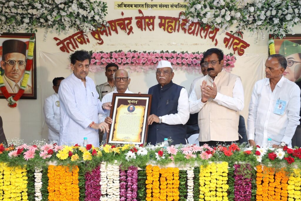 अभिनव भारत शिक्षण संस्थेच्यावतीने नांदेड येथील नेताजी सुभाषचंद्र बोस महाविद्यालयात आज श्री बागडे यांच्या सत्काराचे आयोजन करण्यात आले होते. आयोजित कार्यक्रमात ते बोलत होते. कार्यक्रमास राज्याचे माजी मुख्यमंत्री तथा खासदार अशोक चव्हाण, खासदार डॉ. अजित गोपछडे, संस्थेचे अध्यक्ष बालासाहेब पांडे, कोषाध्यक्ष कैलाशचंद्र काला, सचिव ॲड. वनिता जोशी, महाविद्यालयाचे प्राचार्य एम.वाय. कुलकर्णी आदी मान्यवरांसह प्राध्यापक, विद्यार्थ्यांची उपस्थिती होती. प्रारंभी राज्यपाल हरिभाऊ बागडे यांचा संस्थेचे पदाधिकारी व मान्यवरांच्या हस्ते मानपत्र देऊन सन्मान करण्यात आला.