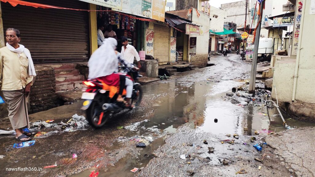 हिमायतनगर मध्ये विकासाची गंगा वाहत आहे, 4 वर्षापासून नळ योजनेच्या नावाखाली गल्ली गल्लीतले रस्ते खोदकाम करून रस्त्याची दुर्दशा करण्यात शासन ,प्रशासन जबाबदार आहे. शहरातील वॉर्ड क्र.14/15, मुख्य रस्ते, ग्रामीण रुग्णालय परिसर ब शहरातील नाली कचऱ्याने तुंब भरलेली असल्याने पाऊसाचे पाणी नालिमध्ये न जाता रस्त्यावर वाहत आहे. त्यात पाईपलाईन साठी रस्ते खोदकाम केल्यामुळे चिखल आणि दुर्गंधी पसरलेली असल्याने नागरिकांचे आरोग्य धोक्यात आले आहे, शाळकरी मुले ,महिला ,वयस्कर नागरिकांना या रस्त्यातून ये जा करण्यासाठी बरीच कसरत करावी लागत अनेकदा घसरगुंडी होऊन जखमी व्हावे लागते आहे. त्यामुळे आला पावसाळा आला… हिमायतनगरकरानो रस्त्यावर चालतांना सांभाळून चला..! असे शहरातील जागरूक महिला – पुरुष एकमेकांना सांगत नगरपंचायत यंत्रणेच्या नाकर्तेपणा बाबतीत बोट मोडत आहेत.