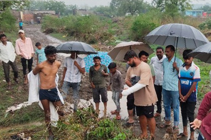 हदगाव, शेख चांदपाशा| हदगाव तालुक्यातील मनाठा सर्कल अंतर्गत येणाऱ्या वरवट परिसरात सोमवारी (दि. २७ मे) दुपारी एक वाजेच्या सुमारास अचानक आलेल्या ढगफुटी सदृश पावसामुळे भीषण घटना घडली. पावसामुळे आलेल्या पूराच्या प्रवाहात एक महिला आणि दोन मुली वाहून गेल्या. त्यातील दुर्गा बळवंत शंकरगे (वय ८) हिचा मृतदेह दुपारी सापडला असून, तिची आई अरुणा बळवंत शंकरगे (वय ३७) आणि बहीण समृद्धी विजय शंकरगे (वय १०) यांचा अनेक तासाच्या शोधानंतर सायंकाळी ६ वाजता मृतदेह सापडले.