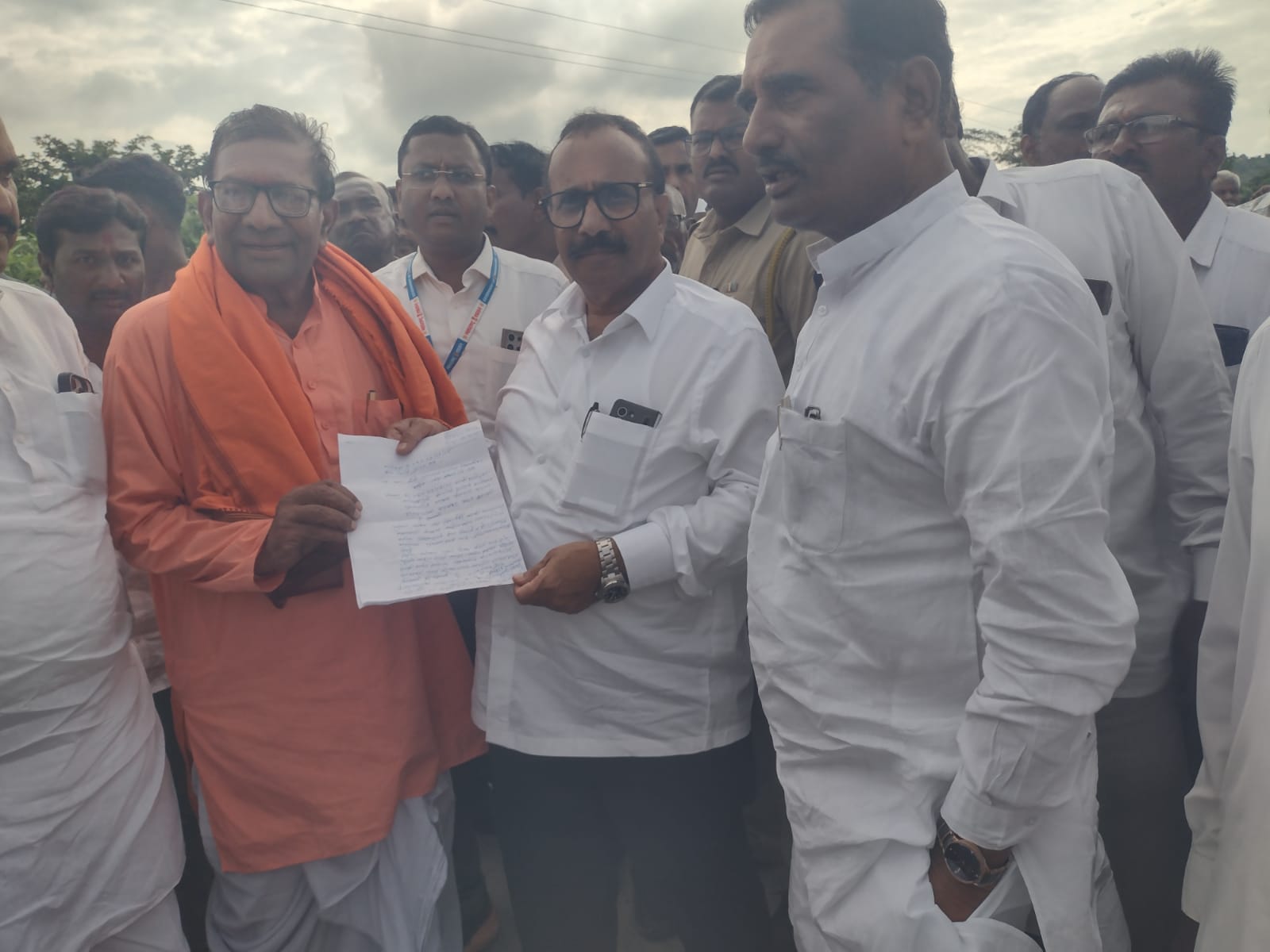 ढगफुटी सदृश्य परिस्थितीत अतिवृष्टी झाल्याने शेतकऱ्यांचे बैल , म्हैस , गाय मृत्यूमुखी पडले आहेत . अनेकांच्या शेतात पाणीच पाणी झाले आहे. तर अनेकांच्या शेतात पिका ऐवजी खडक पहाण्यात येत आहे. शासनाने अतिवृष्टीत नुकसानग्रस्त झालेल्या शेतकऱ्यांचे तात्काळ पंचनामे करून मदत लवकर देण्याची पालकमंत्री व आमदार यांच्याकडे निवेदनाद्वारे केली आहे.
