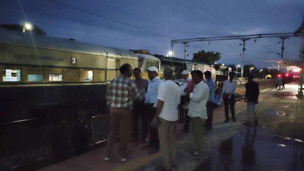 हिमायतनगर,अनिल मादसवार। मुदखेड आदीलाबाद ब्रॉडगेज रेल्वे लाईनवर असलेल्या हिमायतनगर रेल्वे स्थानकाला दि 25 रोजी (सिपीएम ) सेंट्रल प्रोजेक्ट मॅनेजर यांनी भेट देऊन स्थानकावरील चालू असलेल्या विकास कामाची पाहणी केली. रेल्वेस्थानकावर स्वागत कक्ष स्थापन करून तेथे स्वागत कमान उभारण्यात येणार असून, त्याच बरोबर डिवायडर बसवून अंतर्गत रस्त्याचा विकास करण्यात येणार असल्याने हिमायतनगर रेल्वे स्थानक आता हायटेक स्थानक होणार आहे. आखण्यात आलेल्या अंदाज पत्रकानुसार कामांना गती देऊन हिमायतनगर रेल्वे स्थानकाच्या नाविनिकरणाचे काम जलद गतीने पूर्ण करावे अश्या सूचना संबंधितांना दिल्या. यावेळी त्यांच्यासोबत रेल्वेचे अधिकारी, अभियंता व इतर कर्मचारी उपस्थित होते.