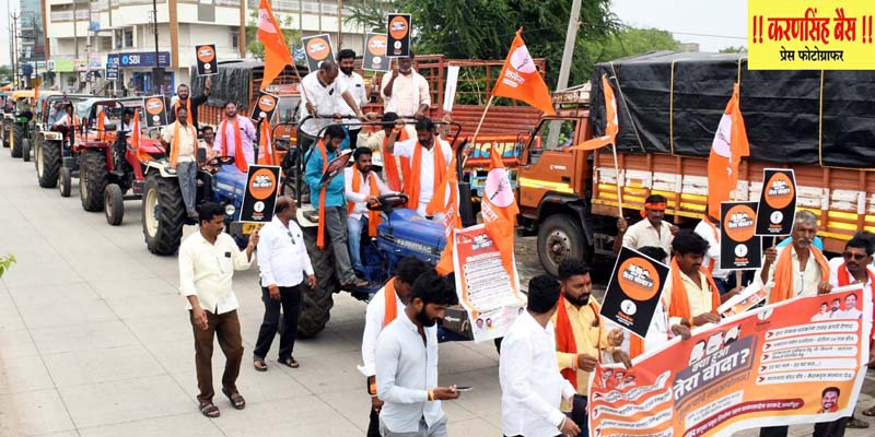 नांदेड| केवळ विधानसभा निवडणुका जिंकण्यासाठी महायुतीच्या नेत्यांनी शेतकरी , शेतमजूर आणि मतदारांच्या डोळ्यात धुळफेक करत आश्वासनाच्या खैराती वाटल्या. शेतकऱ्यांना कर्जमाफी देण्याचे गाजर दाखवून त्यांना वाऱ्यावर सोडले. त्यामुळे महायुती सरकारने दिलेल्या खोट्या आश्वासनाचा जाब विचारण्यासाठी शिवसेना उद्धव बाळासाहेब ठाकरे च्या वतीने नांदेड जिल्ह्यात जिल्हाप्रमुख बबन बारसे यांच्या नेतृत्वात आज भोकर, मुदखेड ,अर्धापूर आणि मुखेड तहसील कार्यालयांवर ट्रॅक्टर मोर्चा काढण्यात आला . या ट्रॅक्टर मोर्चात शेतकरी आणि सर्वसामान्य नागरिक मोठ्या संख्येने सहभागी झाले होते.